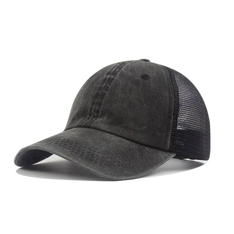 Made Old Cotton Hat Custom Washed Cowboy Net Hat Horsetail Curved Brim Cap