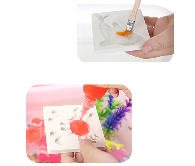 (12 BOTTLE SET) 12*cartoon shape models, 12*coloured water solution, 2*powder, 1*storage container, 1*plastic cup container, 1*instructions,