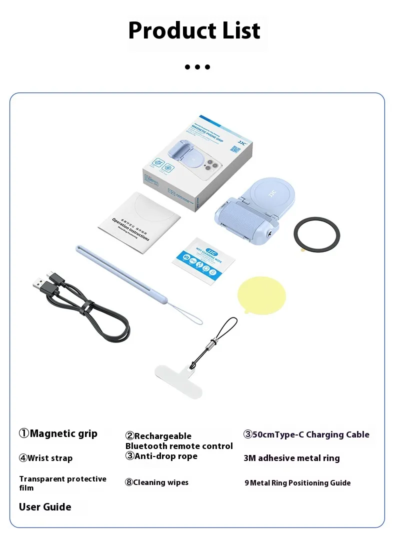 adhesive metal ring ⑦ Transparent protective film ⑧ Cleaning wipes ⑨ Metal Ring Positioning Guide ⑩instructions