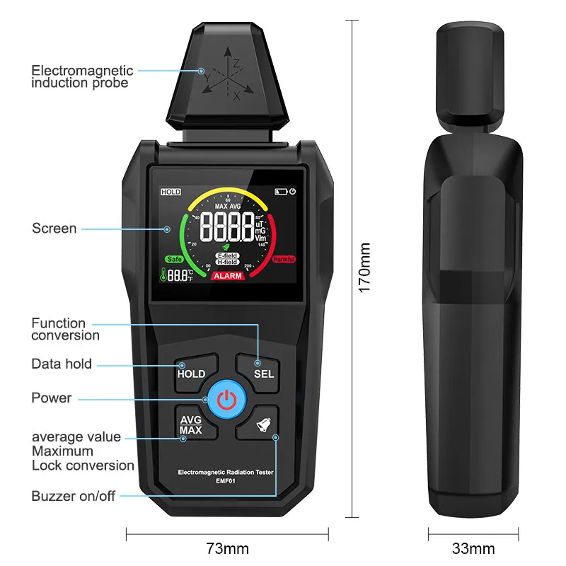 Measurement range: V/m: 0-9999/uT: 0-74/mG: 0-740
