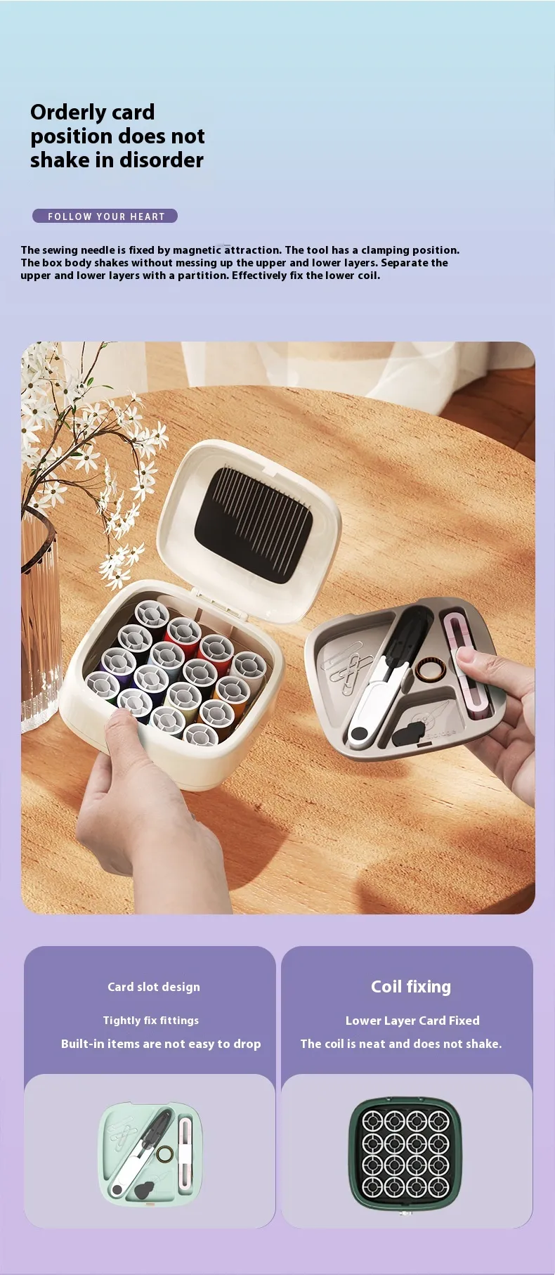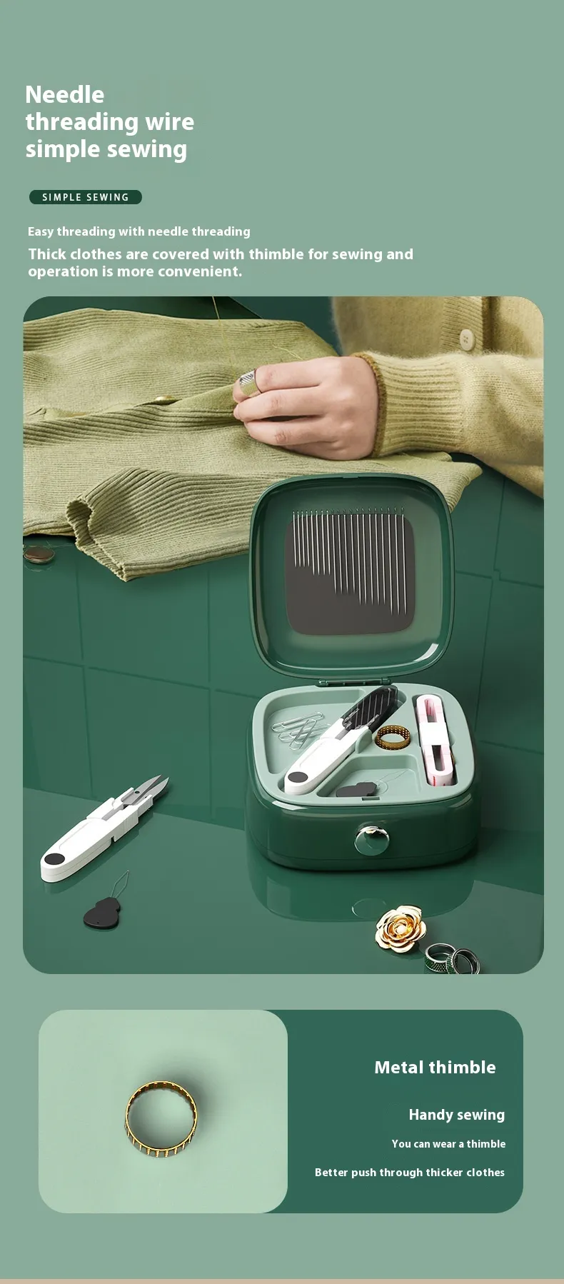 Understanding the needs of sewists — whether quilting, garment making, mending, or embroidery — this kit combines practical functionality with durable construction. Every component has been carefully selected to support precise sewing work, reduce clutter, and improve workflow, making it easier to focus on creativity and craftsmanship rather than rummaging for stray pins or needles.