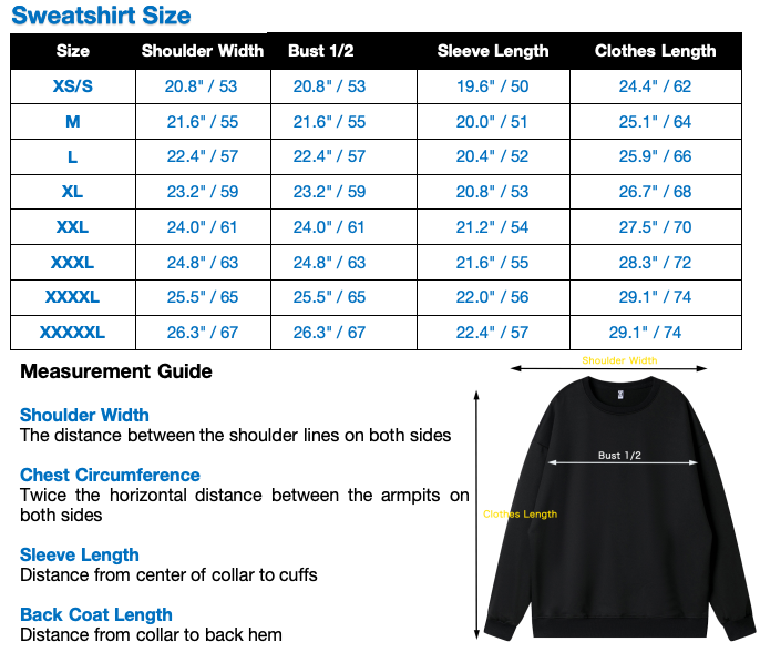 Available in sizes XS - 4XL - Sweatshirts are a unisex standard fit (size guide below)