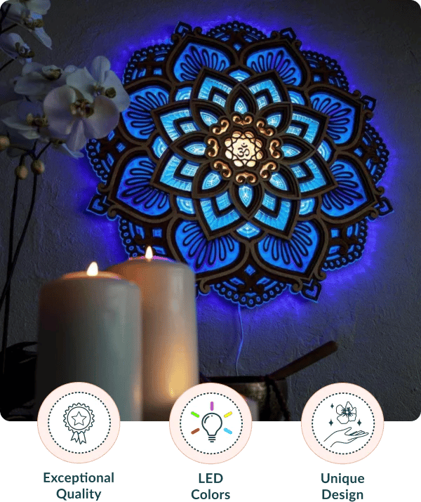 The Lotus Flower Mandala Light Lamp is designed to help you focus during all your spiritual practices. It emits a soothing light that gently puts you into a deeply meditative state.