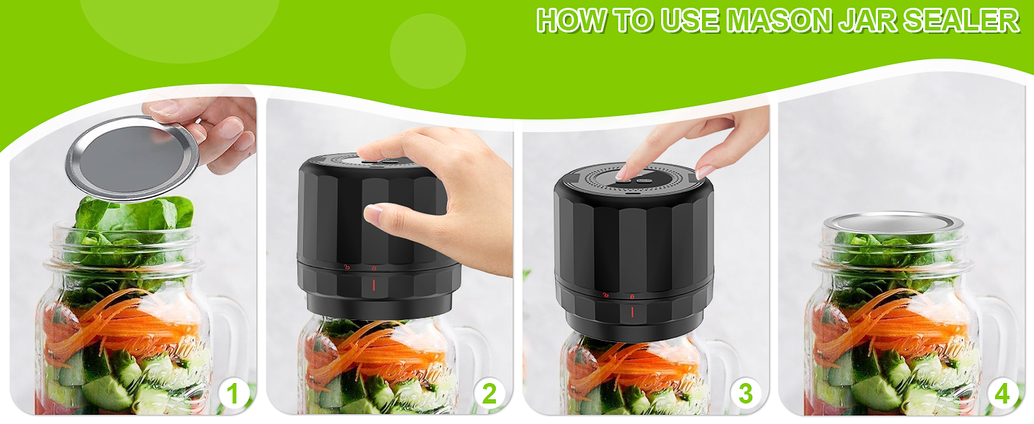 - 【Portable vacuum sealer】Don't have a vacuum sealer? Don't worry!!! We offer you an electric Mason jar sealer that you can use to extract the air from your Mason jars. The sealer is too big to carry with you when you travel or have a picnic? You can also use this electric sealer instead of it.