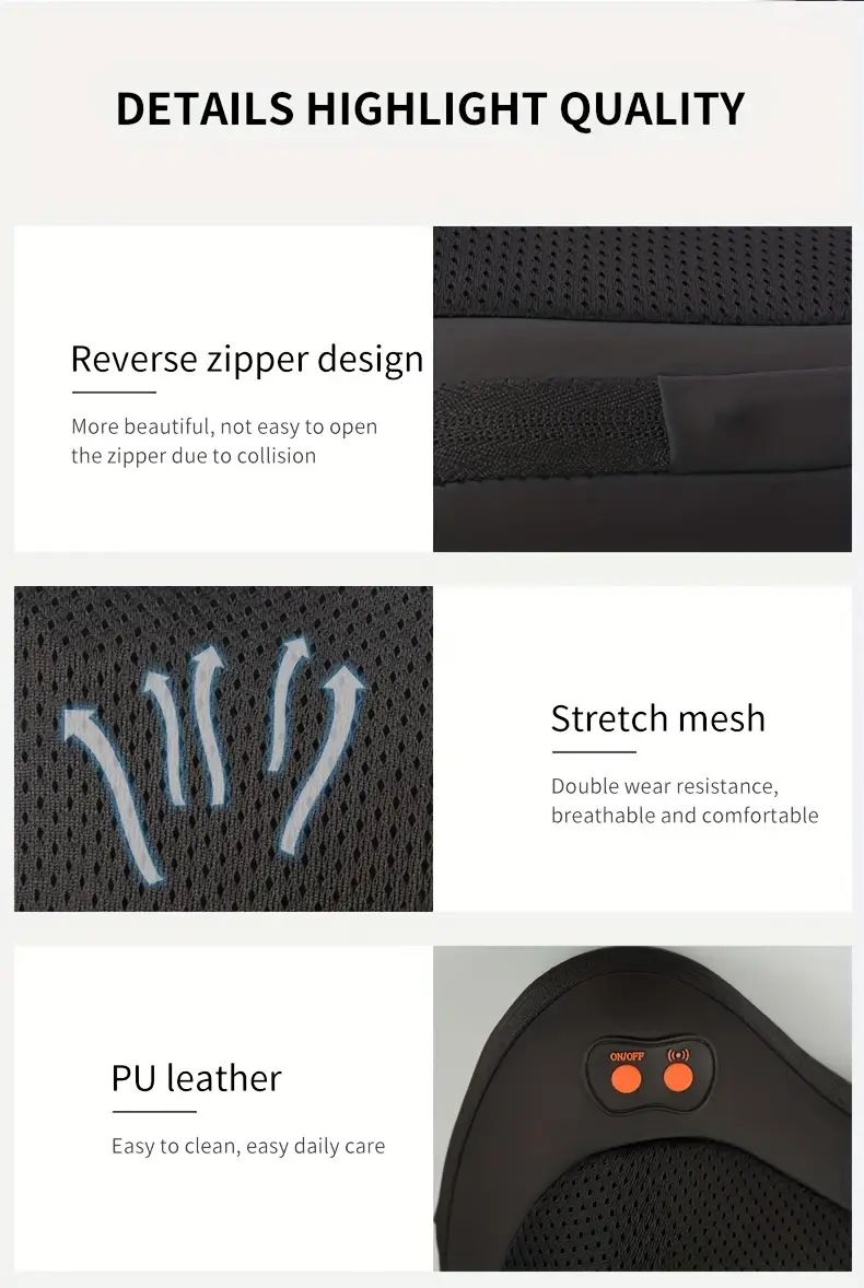 - Shiatsu kneading massage: Rotating nodes mimic real hand pressure