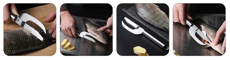 - Double-Row Serrations:Â Serrated design for easy scraping of fish scales without damaging the flesh. Double rows of serrated teeth, so that small and large fish scales have nowhere to hide.