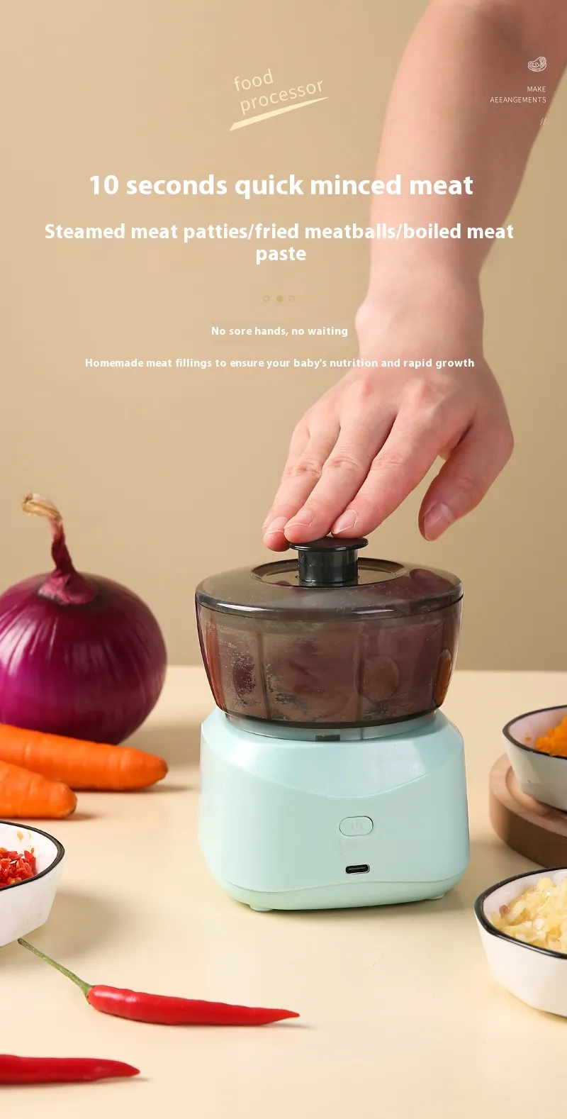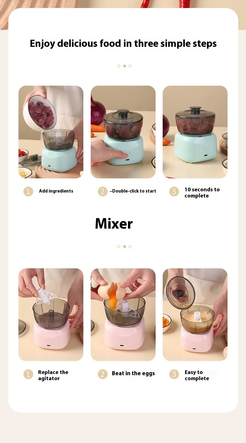 Function: baby food supplement, portable charging, wireless operation, egg mixture pass
