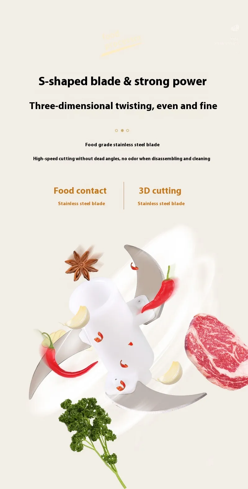 Completes repetitive tasks like chopping onions, shredding cabbage, or mixing dough in moments — eliminating manual fatigue and accelerating