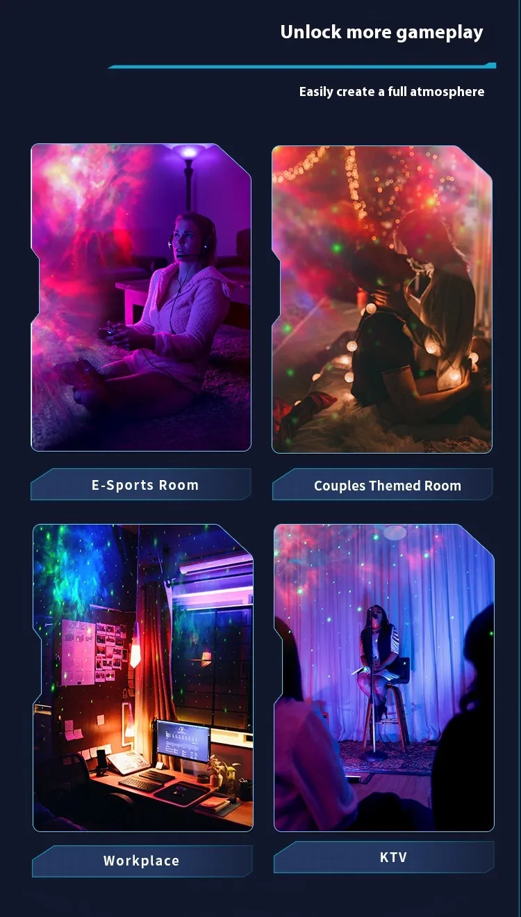 - Starry Sky Projection: Create a peaceful atmosphere with projections of stars, galaxies, and nebulae.
