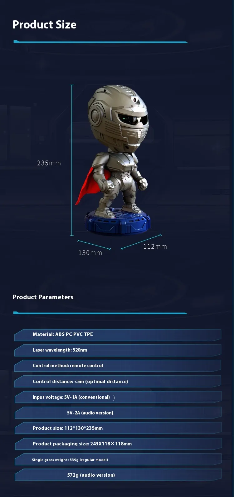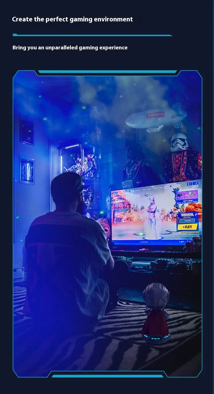 To add to the immersive experience, the Mech Warrior Starry Sky Projection Lamp comes with a built-in sound function. It can sync with music or play soothing sounds to enhance your relaxation or entertainment experience. The ambient light coupled with background sound creates a perfect atmosphere for unwinding after a long day or setting the mood for a romantic evening.