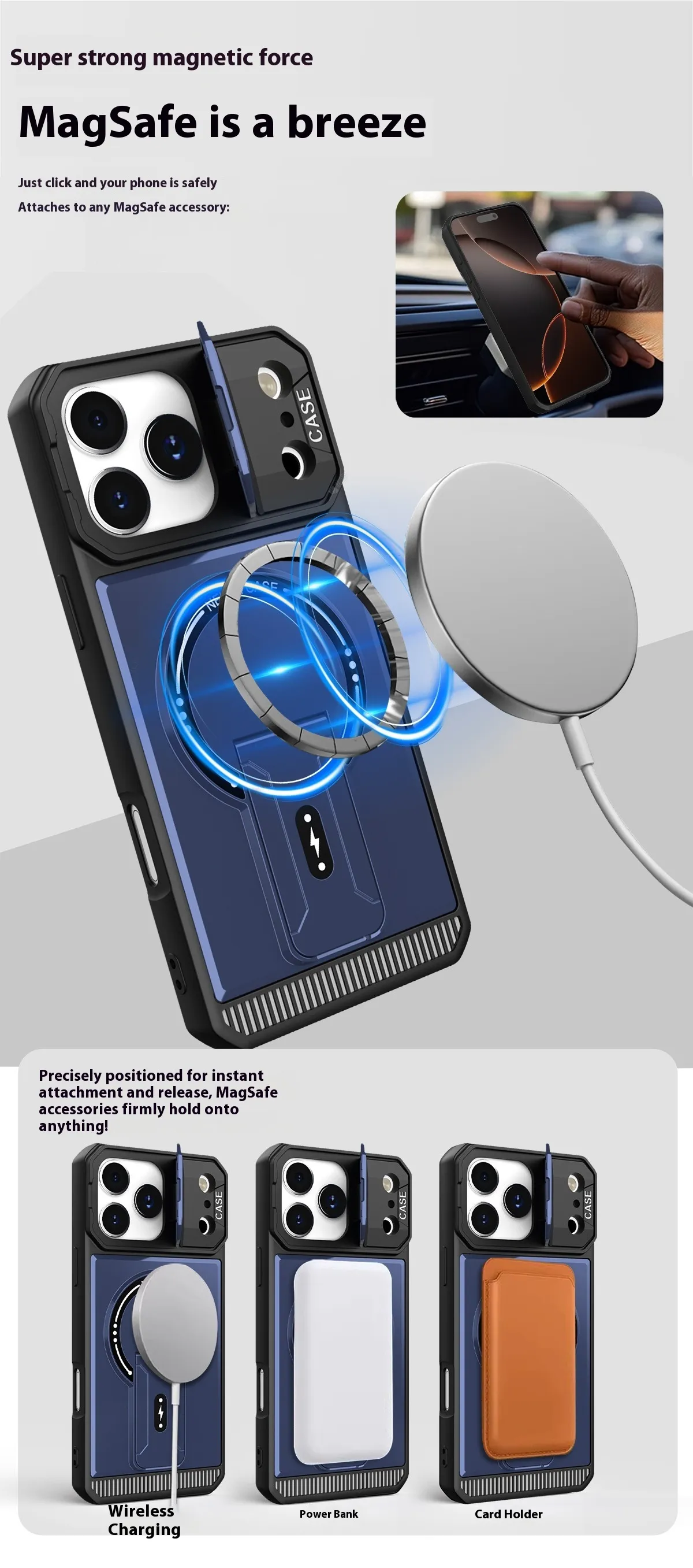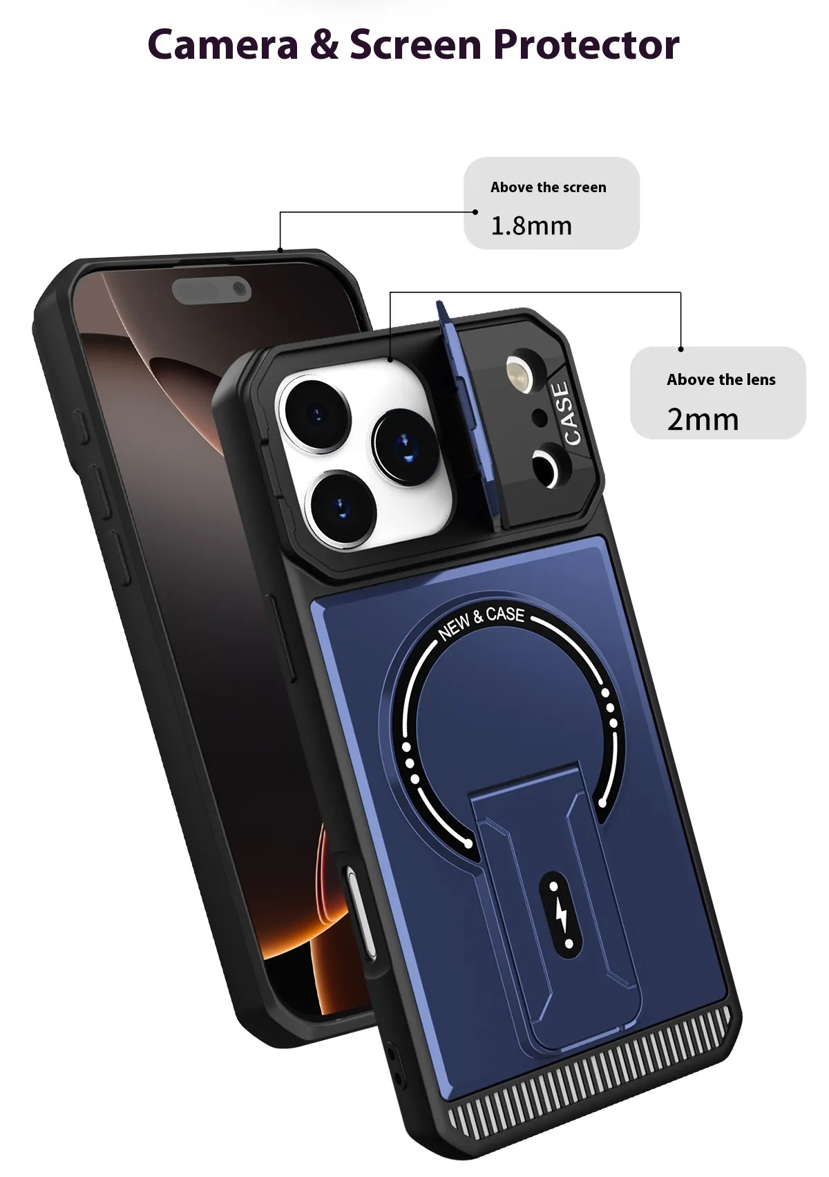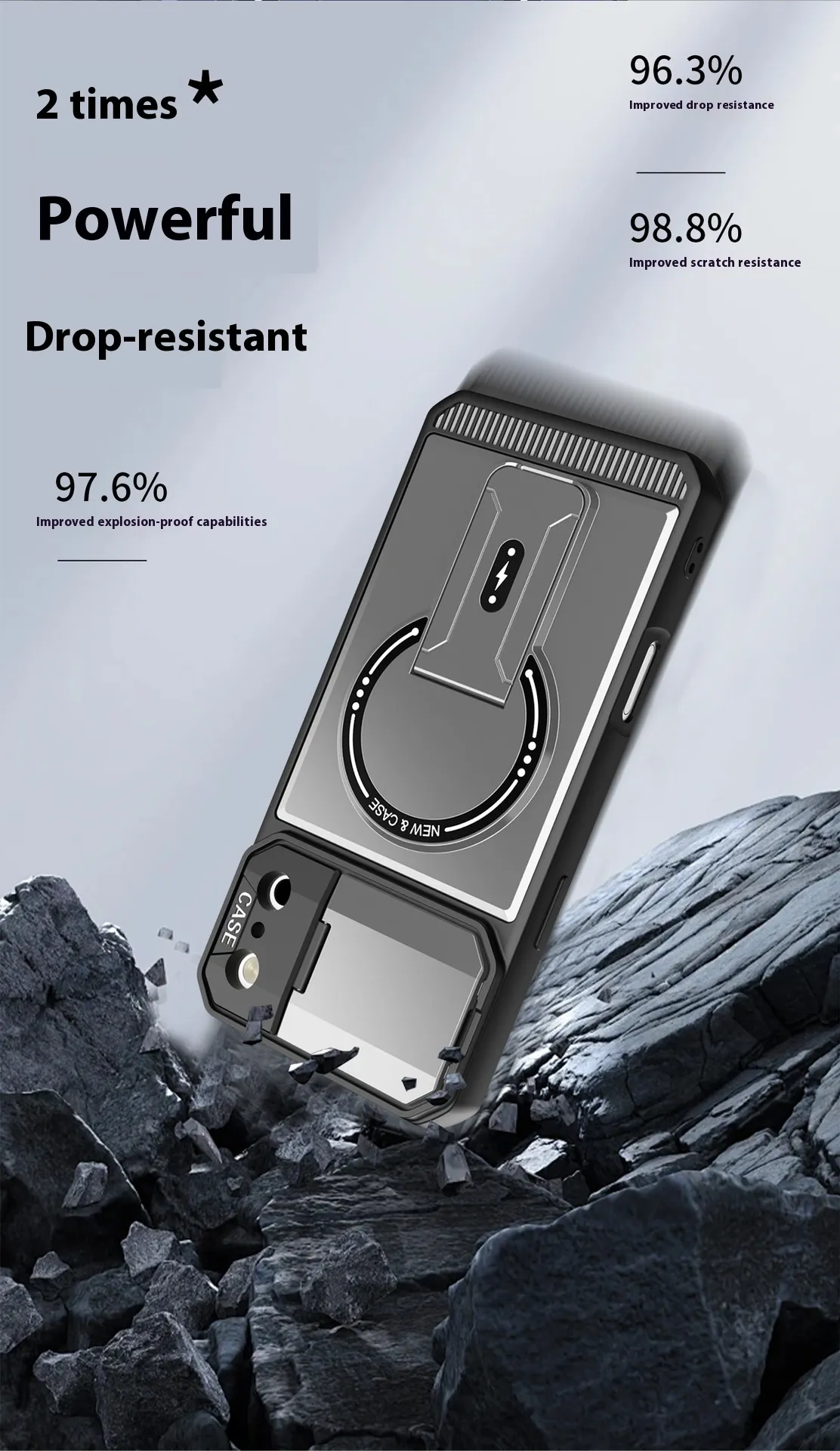 The Mecha Bracket Magnetic Drop-resistant Phone Case combines a futuristic mechanical design with advanced protection technology, making it the perfect choice for New Zealand users who want style, durability, and convenience. Featuring a built-in magnetic function and a foldable mecha-style bracket, this case not only protects your device but also enhances usability in work, study, and entertainment.