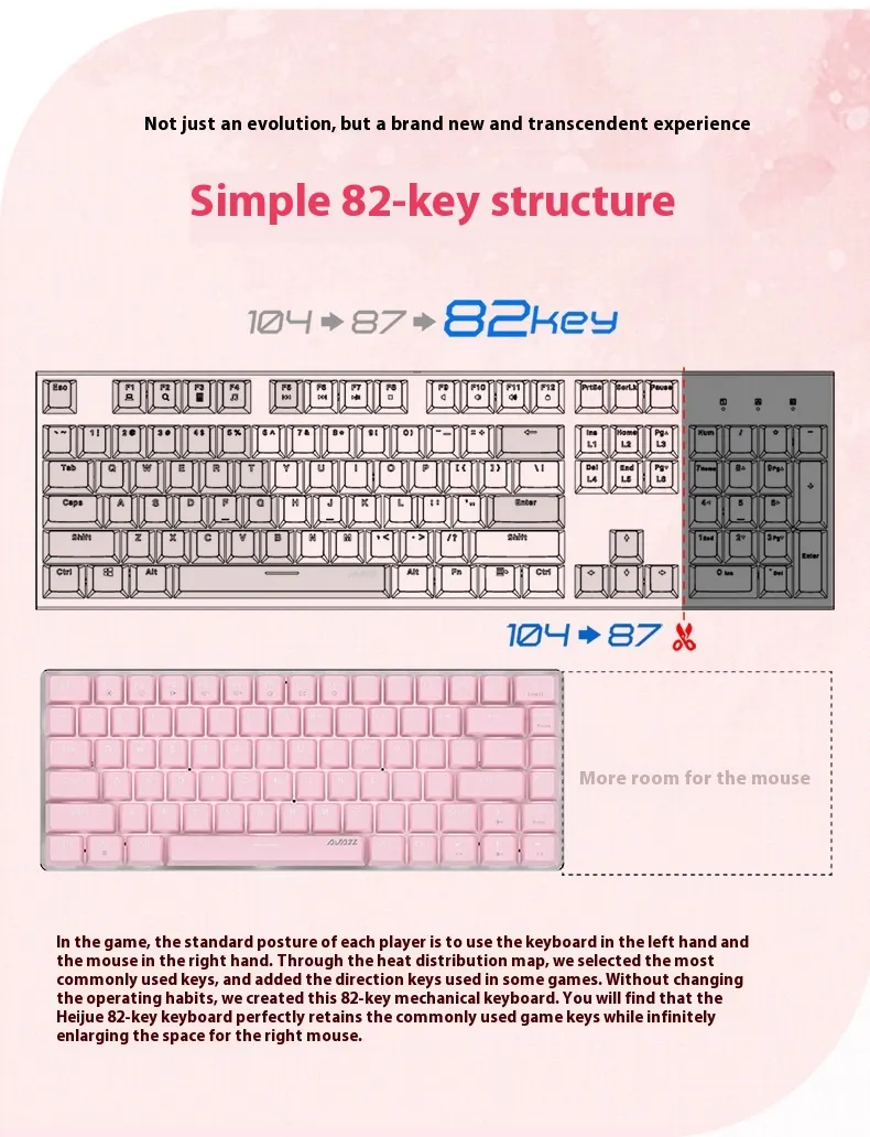 - Compact 82-Key Layout: Space-saving design for efficient typing and gaming.