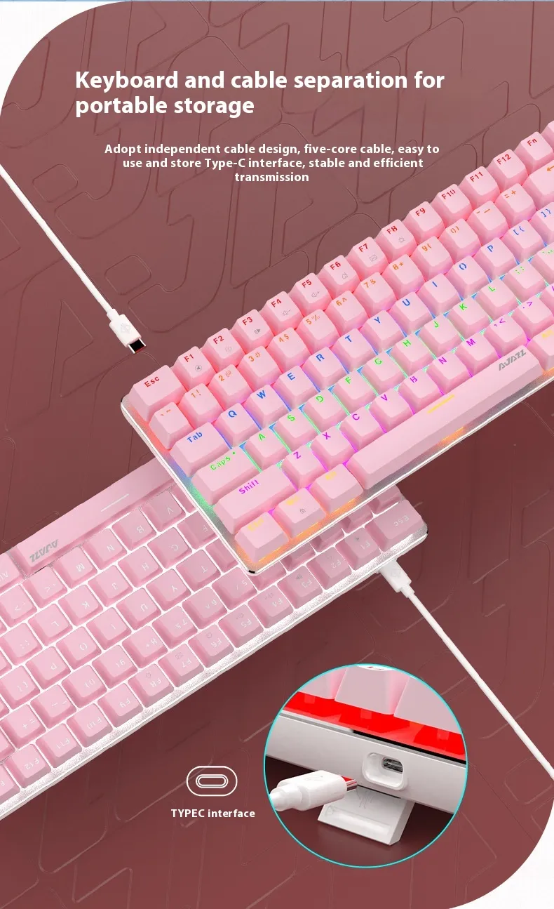 Equipped with mechanical switches, this keyboard delivers the tactile feedback and clicky sound that mechanical keyboard enthusiasts crave. Whether you're typing, coding, or gaming, the mechanical switches ensure every keystroke is responsive, precise, and satisfying. The fast key response is essential for high-performance gaming, providing a competitive edge during intense gaming moments.