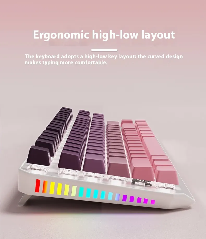 Featuring unique side engravings, this keyboard combines aesthetic appeal with functionality, giving your desk a modern, professional look. The compact 87-key layout saves space while maintaining all essential keys for efficient typing and gaming.