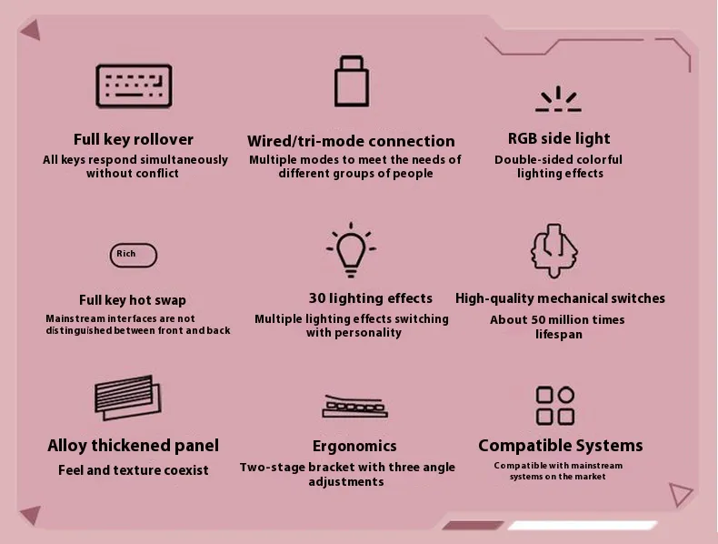 Built with high-quality materials, this keyboard ensures long-lasting durability and consistent performance. The ergonomic design minimizes finger fatigue during long gaming or typing sessions, making it suitable for both office use and competitive gaming.