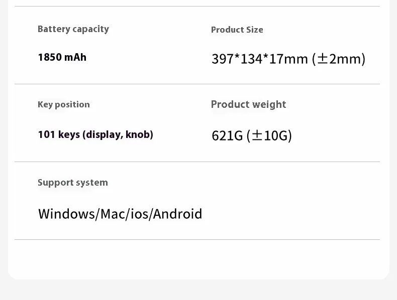 Packing List: keyboard/manual/charging cable