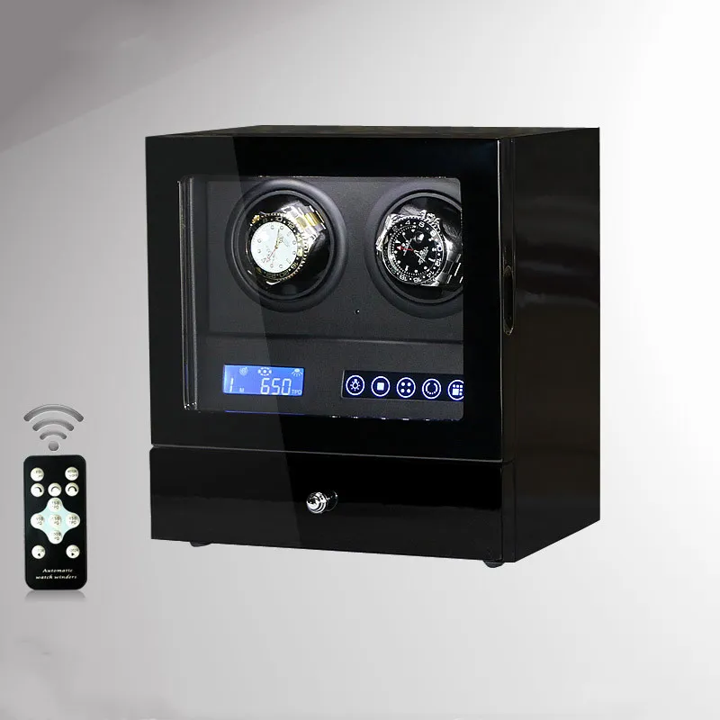 The Mechanical Watch Shaker features a modern, sophisticated design, making it an eye-catching display piece. Available in classic wood finishes, carbon fiber, and high-gloss lacquer, it complements any luxury watch collection.
