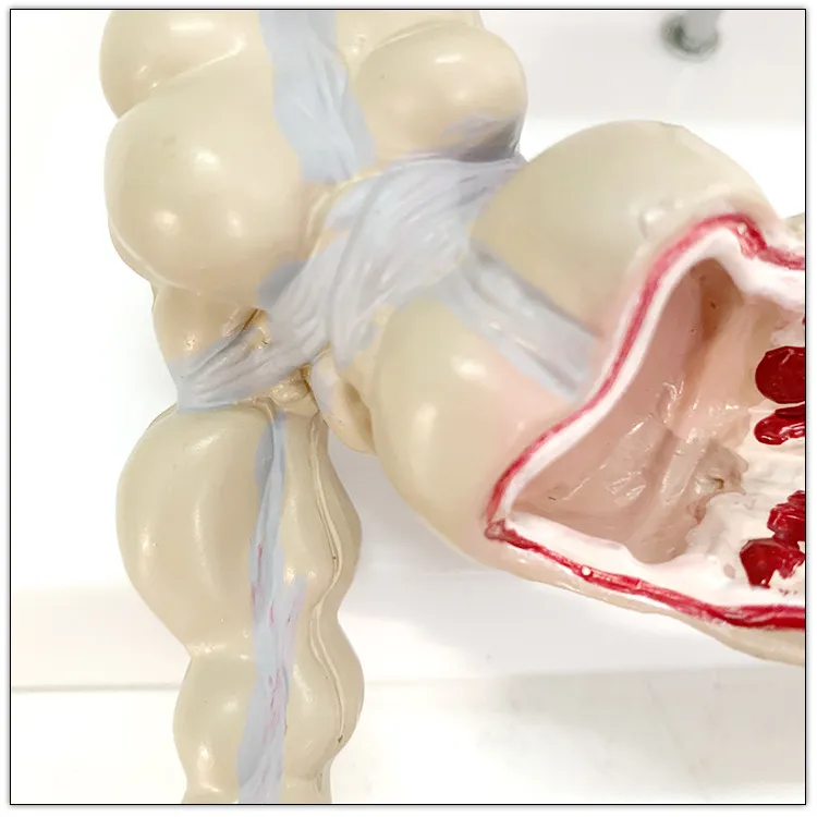 The model often includes a cross-sectional view or open design to show inner structures, such as the villi of the small intestine, which play a vital role in nutrient absorption. This inner detail allows students and professionals to gain a deeper understanding of how the intestines function, from breaking down food to absorbing nutrients. It also offers insight into common intestinal health issues, such as inflammation or malabsorption.