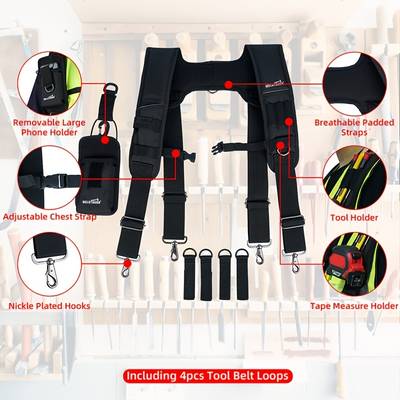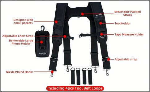 improvement project, these suspenders are tailored to make your job easier by evenly distributing the weight of your tools and reducing