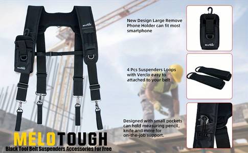Choosing the MELOTOUGH Heavy Duty Padded Tool Belt Suspenders means opting for a product that offers superior comfort, durability, and support. Unlike traditional suspenders, these feature a 4-point support system that evenly distributes the weight of your tools, making it easier to carry heavy loads without straining your back. The adjustable fit, utility pockets, and detachable phone holder add to the convenience, making it a versatile tool for both professionals and DIY enthusiasts. If you want to ensure comfort and maximize your productivity on the job, these suspenders are an excellent choice.