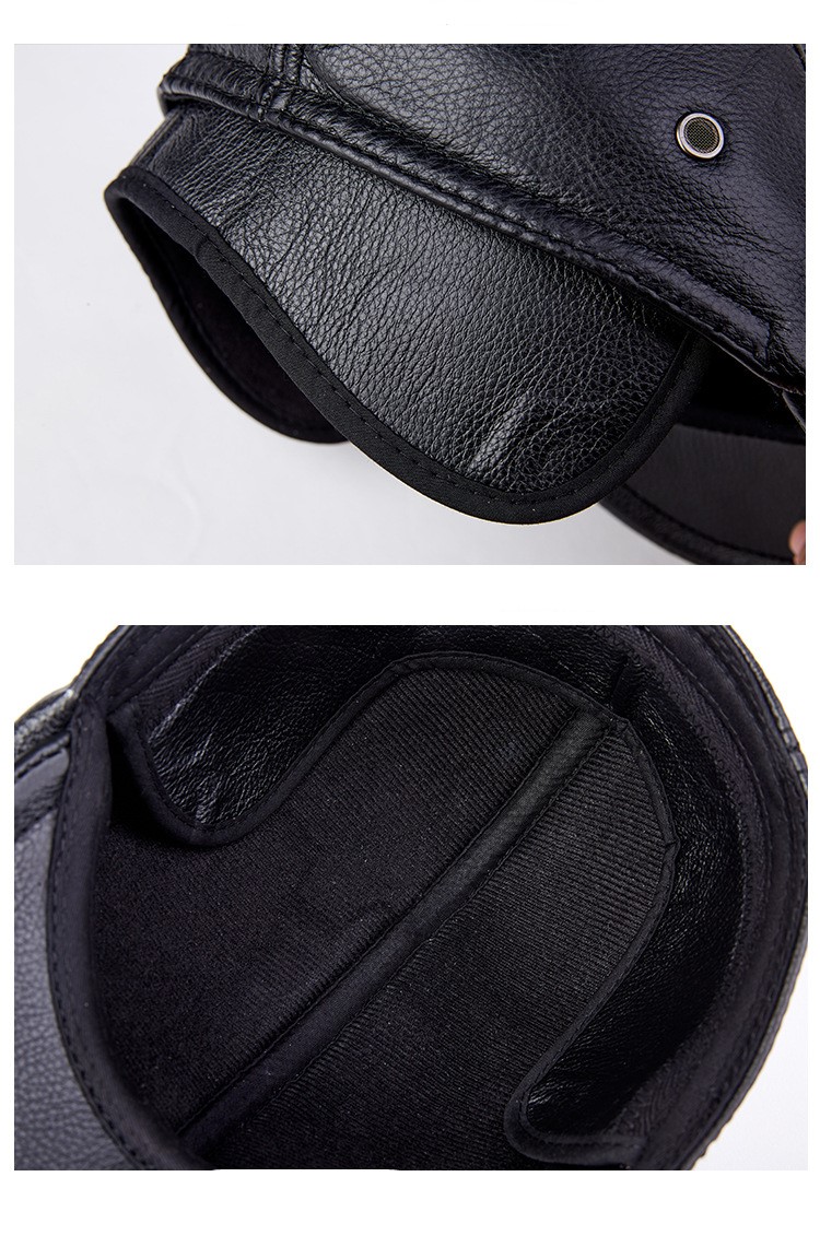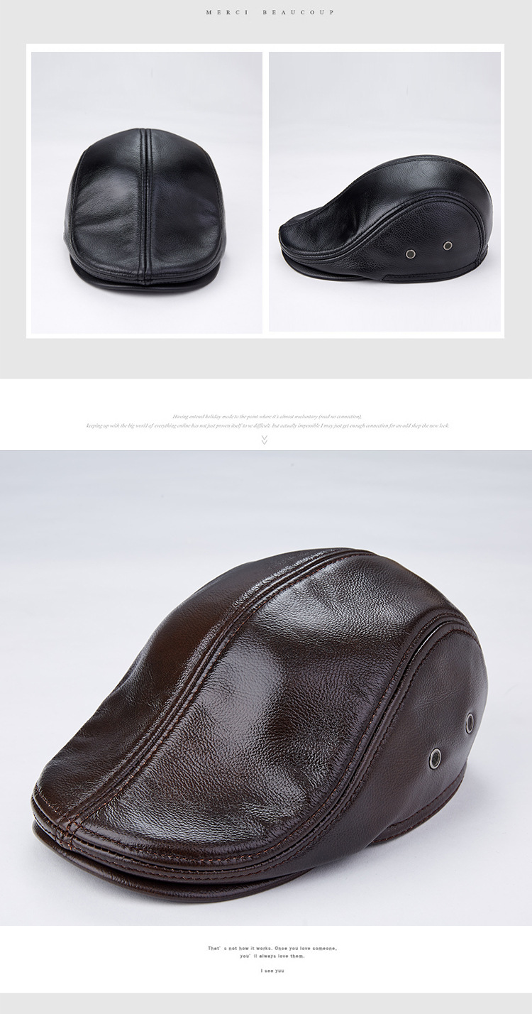 Men Genuine Cowhide With Ear Flaps Beret Hats