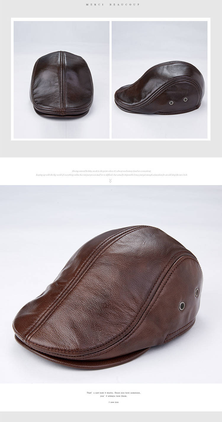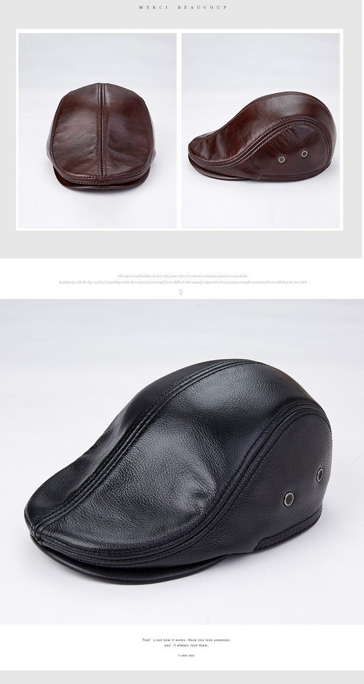 Men Genuine Cowhide With Ear Flaps Beret Hats