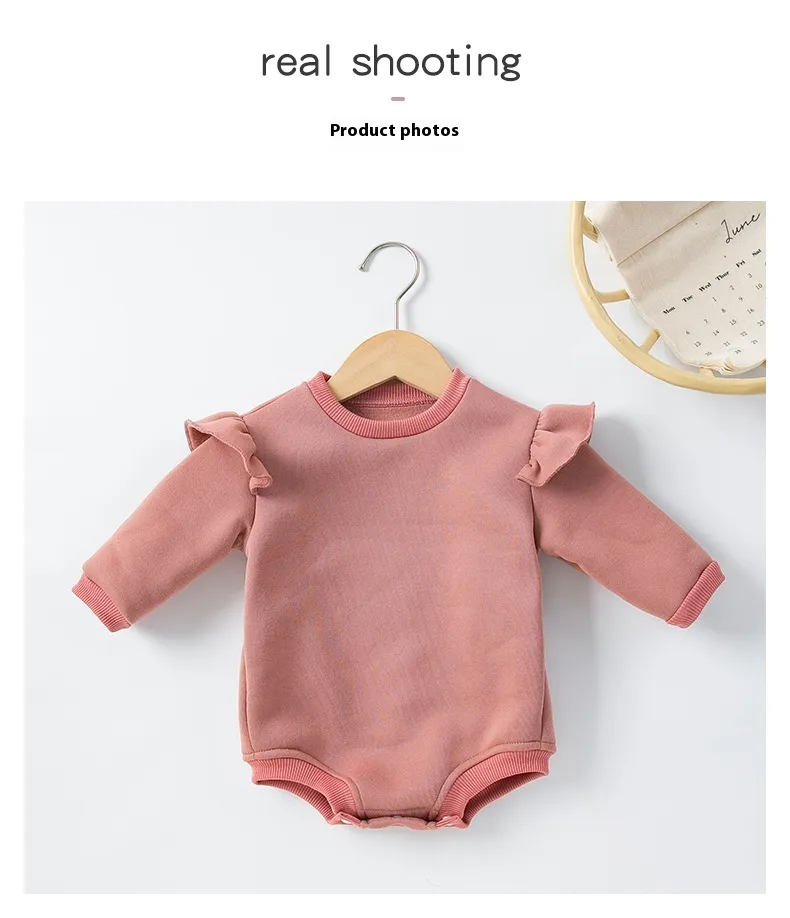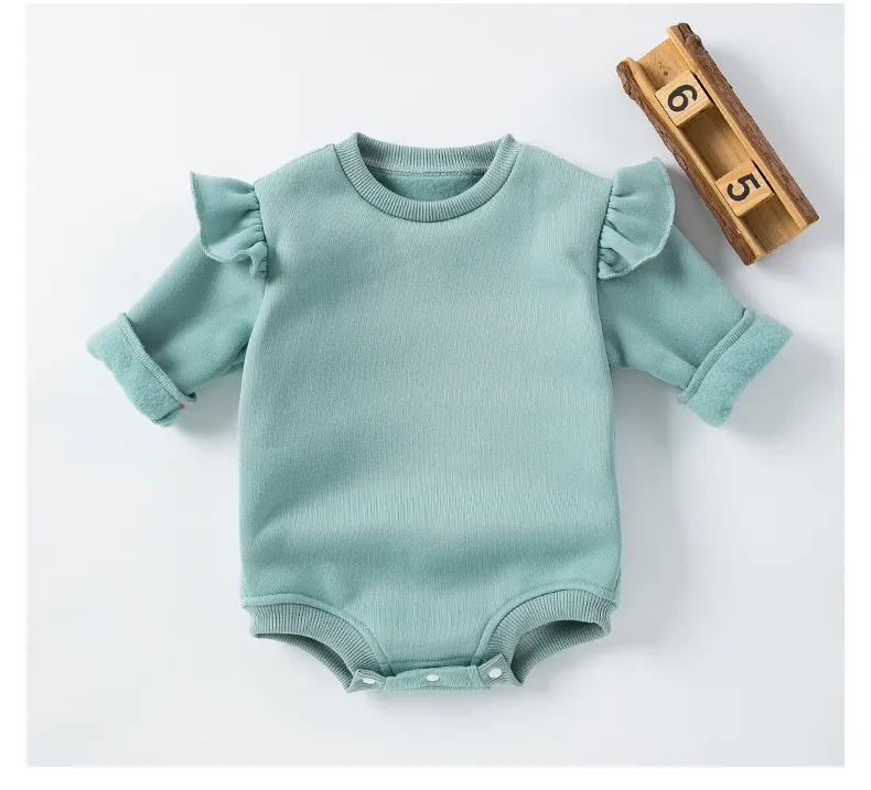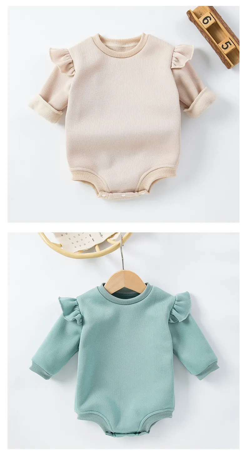 romper provides just the right amount of warmth, ensuring that your baby stays comfortable. The solid color design adds a minimalist yet