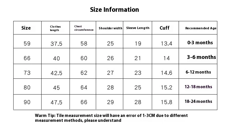 Suitable height: 59(0-3 months),66(3-6 months),73(6-12 months),80(12-18 months),90(18-24 months)