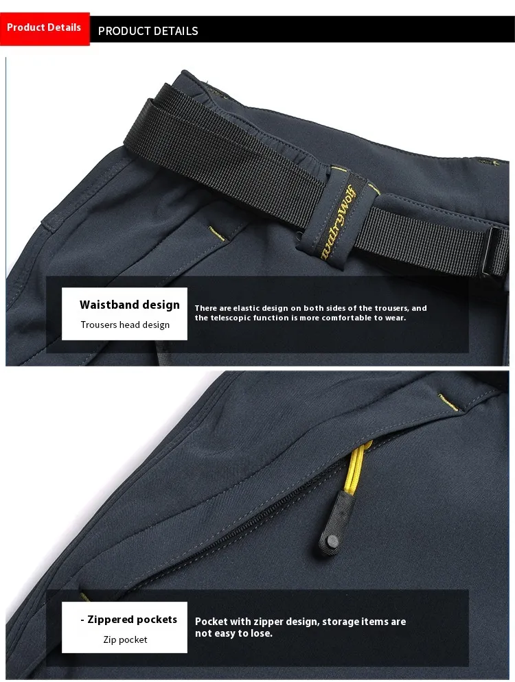 Designed for active men, these pants combine comfort with practical functionality. The zipper pockets are perfect for storing small items