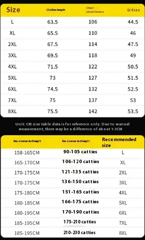 Size: L,XL,XXL,XXXXL,XXXXL,5XL,6XL,7XL,8XL