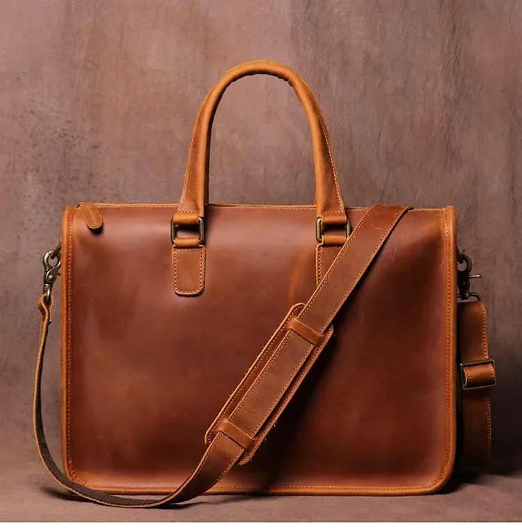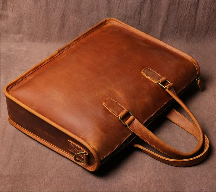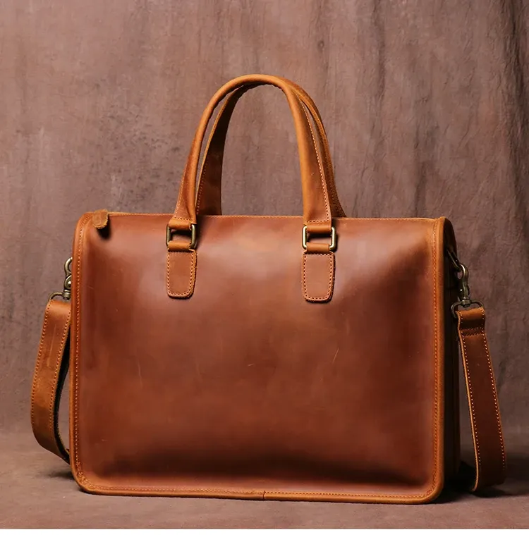 Men's Bag Crazy Horse Leather Briefcase For Laptop
