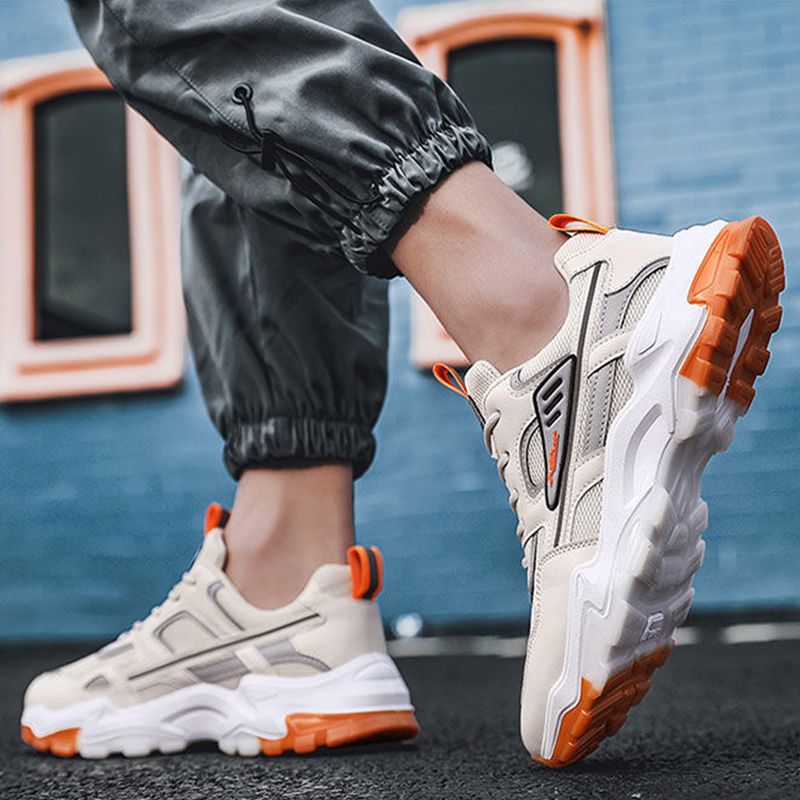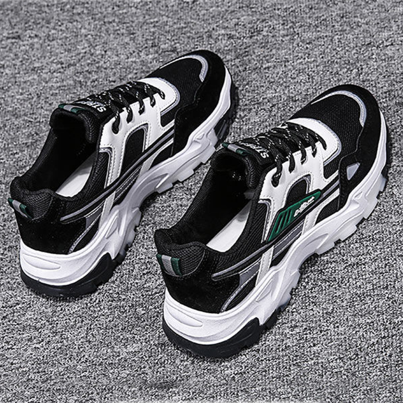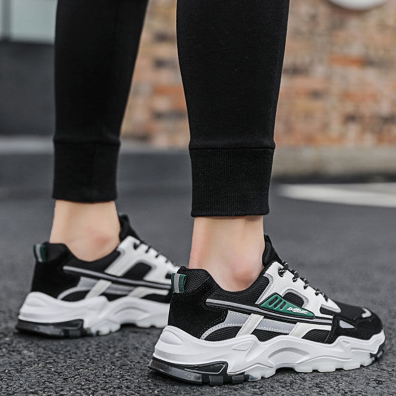 Men's Black & White Lace-up Mesh Sneakers