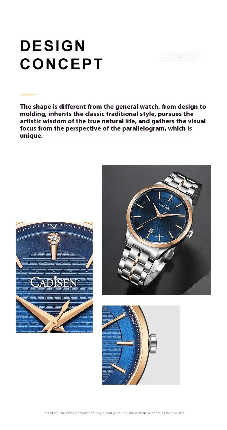 high-quality leather or stainless steel strap that fits securely on your wrist. The combination of durable materials and timeless