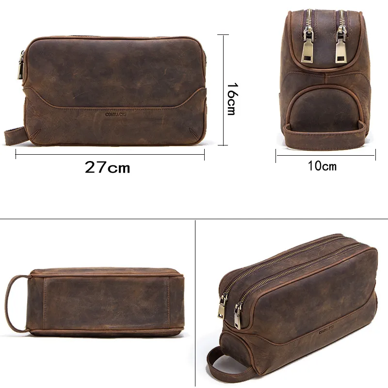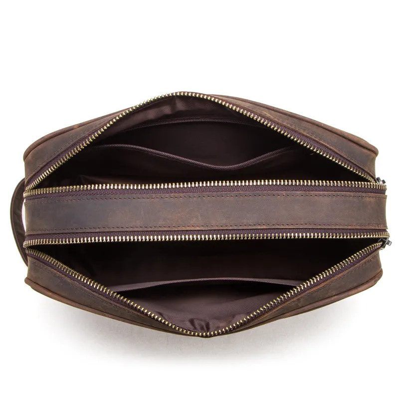 Discover timeless elegance with the Men's Genuine Leather Vintage First Layer Leather Clutch, a sophisticated accessory designed for the modern gentleman. Crafted from premium first-layer leather, this clutch showcases a rich, vintage aesthetic that adds a touch of class to any outfit. The soft, supple texture not only exudes luxury but also ensures durability, allowing this clutch to age beautifully and develop a unique patina over time.The Vintage Leather Clutch features a spacious main compartment that provides ample room for your essentials, including your phone, wallet, keys, and small documents. The thoughtfully designed interior includes card slots and additional pockets for easy organization, making it the perfect companion for both casual outings and formal events. Whether you're heading to a business meeting, a night out, or a weekend getaway, this clutch combines style and practicality seamlessly.Designed for versatility, the Men's Genuine Leather Clutch can be carried by hand or tucked under your arm for a refined look. Its minimalist design is complemented by subtle stitching and quality hardware, ensuring it remains a timeless piece in your collection. Elevate your accessory game with the Men's Genuine Leather Vintage First Layer Leather Clutch, where classic design meets modern functionality.
