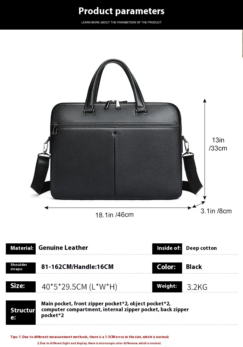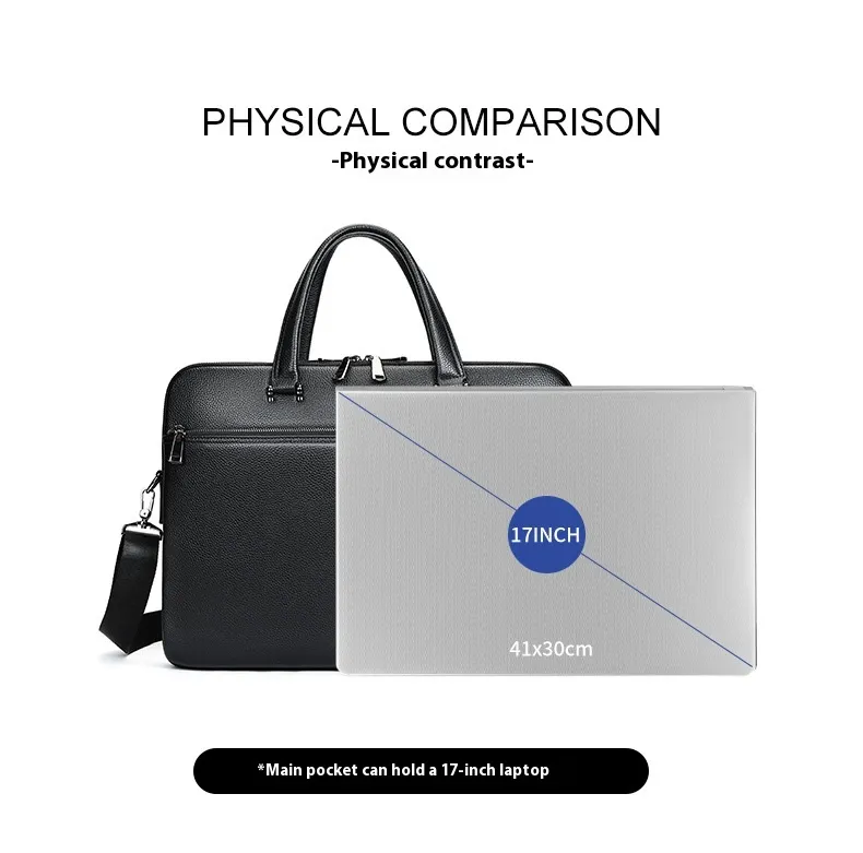 Men's Handbag Horizontal Briefcase Large Capacity First Layer Cowhide 17-inch Computer Bag