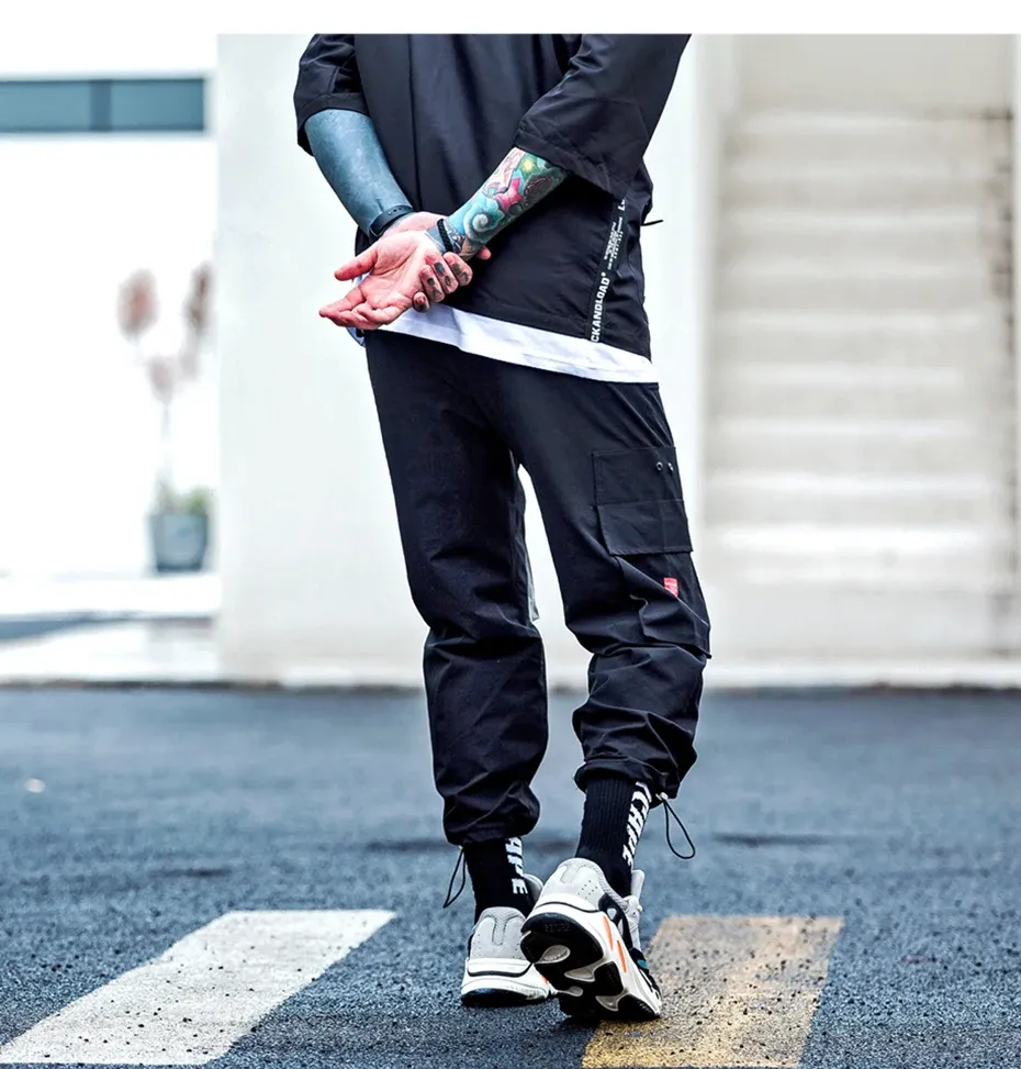 The Men’s Hip-Hop Beam Pants feature elastic beam cuffs that create a tapered look, bringing a modern touch to traditional hip-hop fashion. These cuffs make it easy to style the pants with different footwear, from sneakers and high-tops to combat boots. This trendy feature also ensures the pants stay in place, providing a comfortable and secure fit throughout the day.
