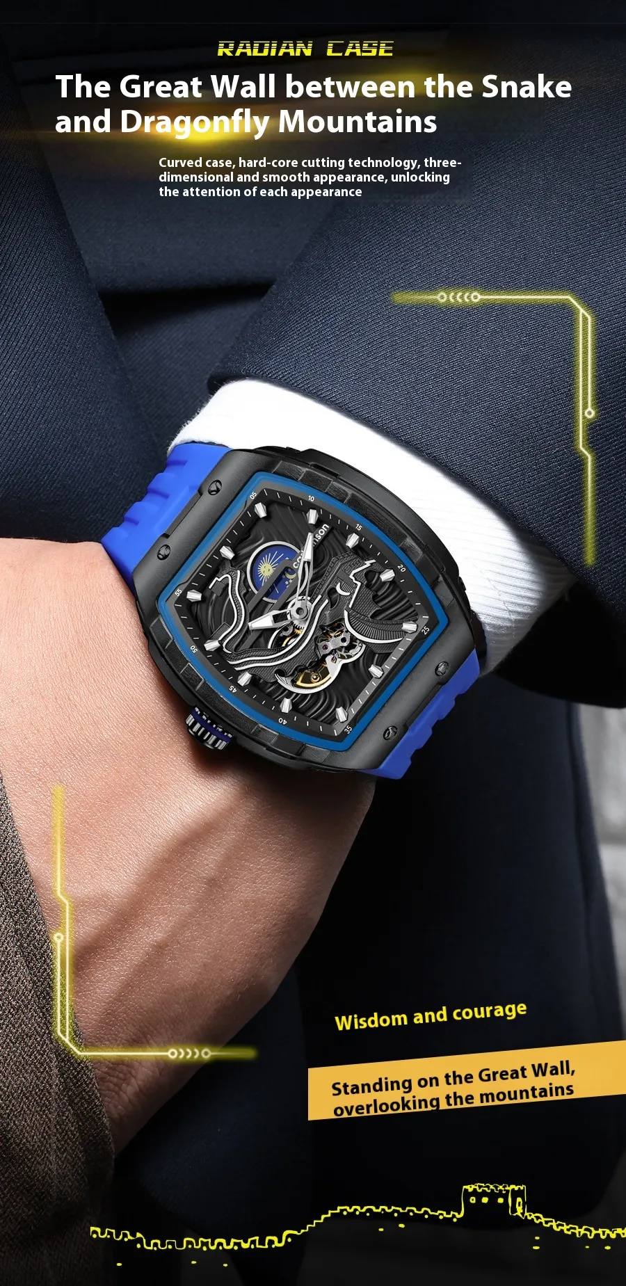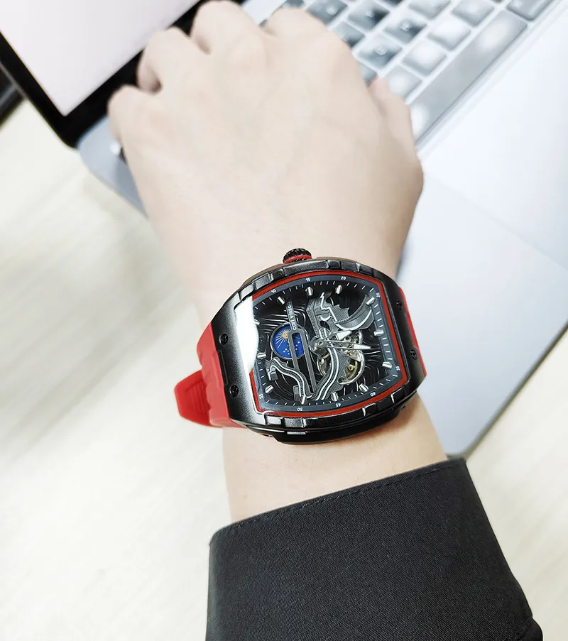 Introducing the Men's Hollow Automatic Watch, a remarkable fusion of cutting-edge design and reliable performance, tailored for the modern man who values both style and functionality. This exquisite timepiece features a captivating hollow dial that reveals the intricate mechanics of its automatic movement, allowing you to appreciate the artistry of watchmaking. The luminous hands and markers provide excellent visibility, ensuring you can effortlessly check the time, whether during the day or in low-light conditions.Designed for the adventurous spirit, the Waterproof Mechanical Watch boasts a durable construction that can withstand various environments. With a waterproof rating, it offers protection against splashes and brief immersions, making it an ideal companion for daily wear or outdoor activities. The robust casing not only safeguards the delicate movement within but also enhances the watch's sophisticated appearance, making it suitable for both casual outings and formal events.Comfort and versatility are key features of the Men's Hollow Automatic Watch. It comes equipped with an adjustable strap that fits securely on your wrist, providing all-day comfort. Its striking design and high-quality materials ensure that this timepiece is not just a functional accessory but a statement piece that elevates any outfit. Experience the perfect blend of innovation and elegance with the Men's Hollow Automatic Watch: Luminous Waterproof Mechanical Timepiece, a must-have for those who appreciate the finer things in life.