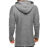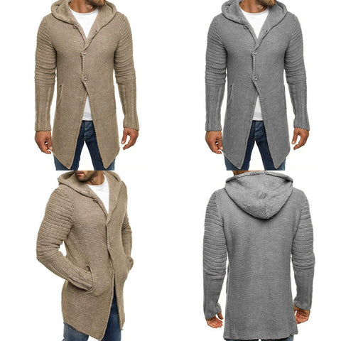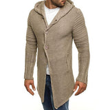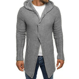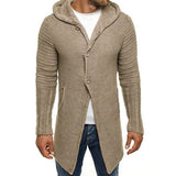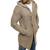 Men's hooded long sleeve mid length knit cardigan