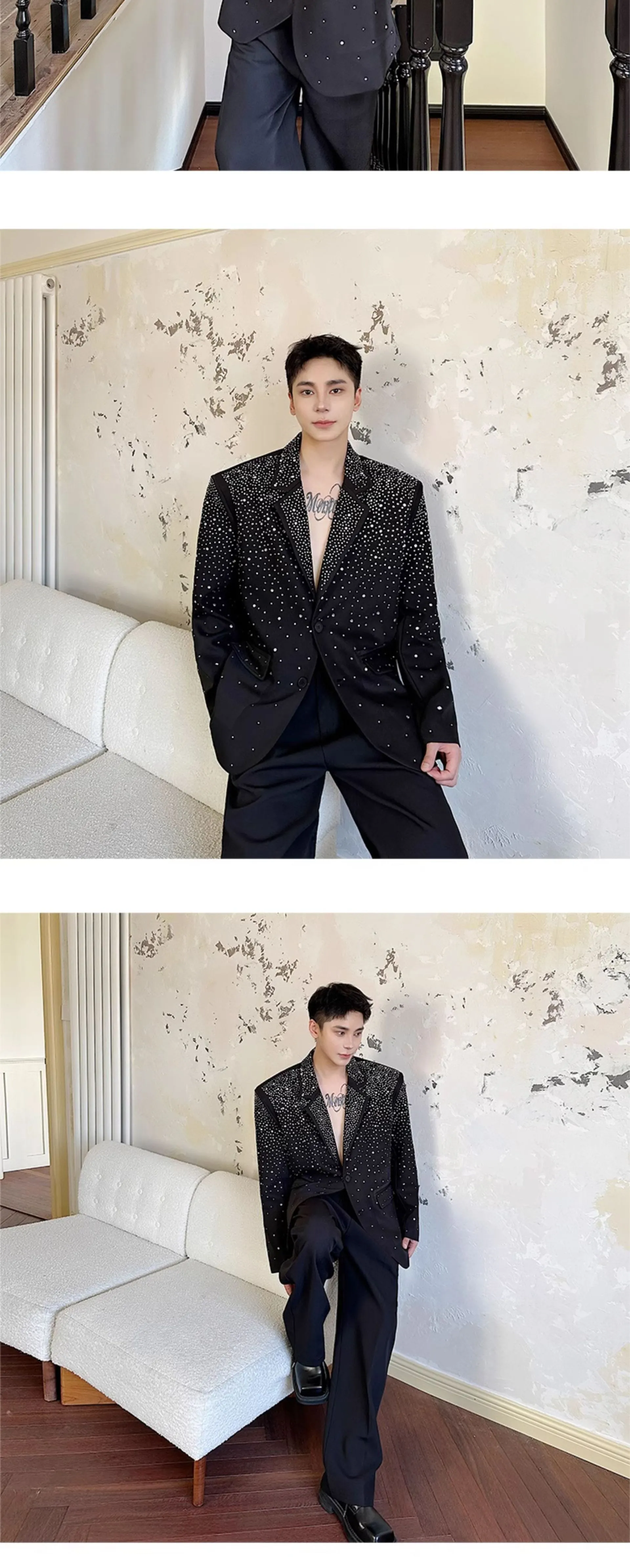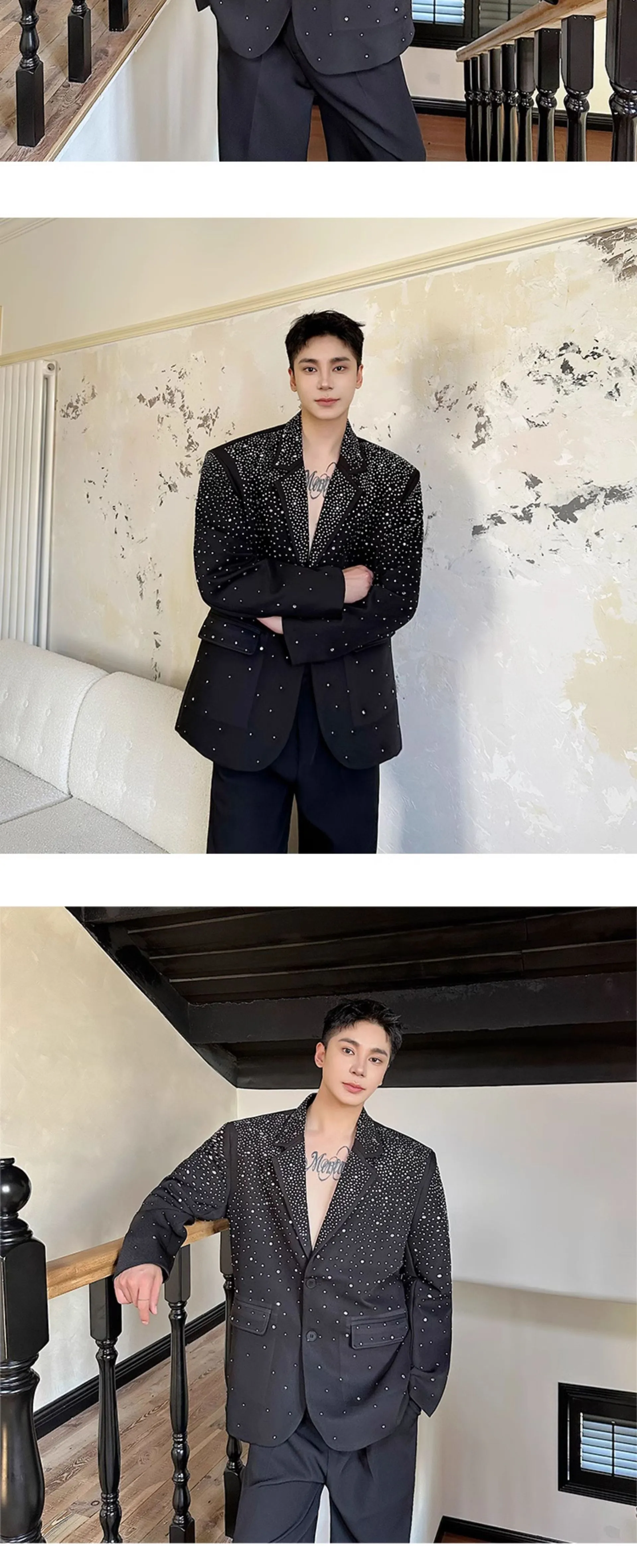 The Men's Hot Drilling Casual Suit Jacket is the ultimate combination of stylish sophistication and modern design. Perfect for the man who wants to add a touch of sparkle and flair to his wardrobe, this suit jacket is crafted with attention to detail, featuring hot drilling accents that elevate its look. Whether you're attending a casual business meeting, a night out with friends, or any event that calls for a sleek yet fashionable appearance, this jacket ensures you stand out with confidence. Made from high-quality fabric, it offers comfort and style, ensuring you look your best while feeling great.