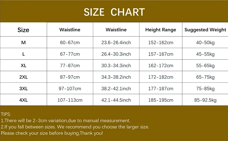 Size: M [45.00kg-55.00kg],L [55.00kg-65.00kg],XL [65.00kg-75.00kg],2XL [75.00kg-85.00kg],3XL [85.00kg-95.00kg], 4XL [95.00kg-110.00kg]]