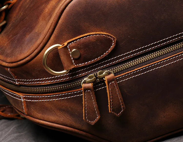 Men's Leather Hand Travel One Shoulder Crossbody Duffel Bag