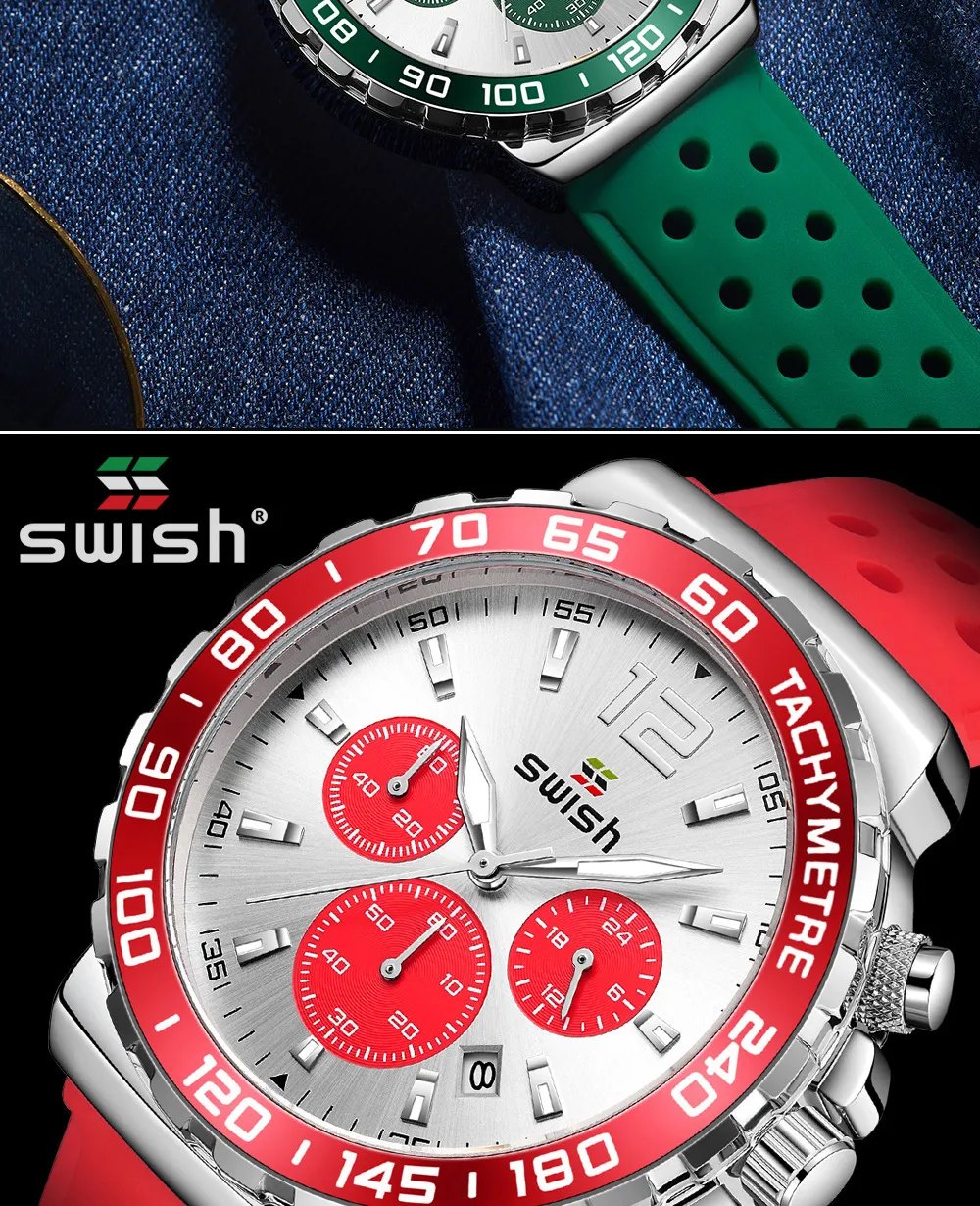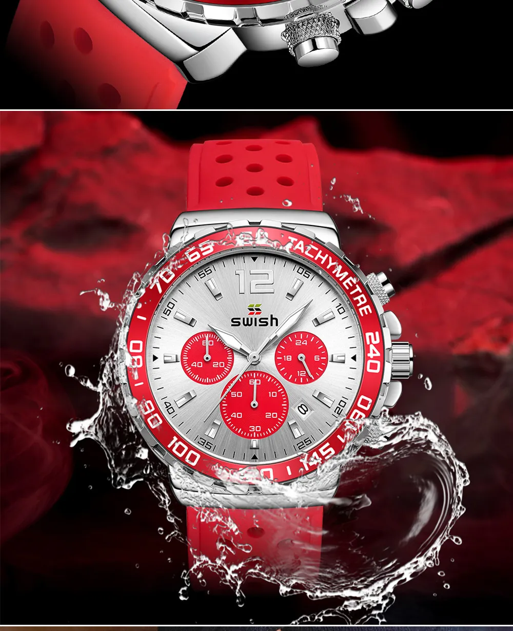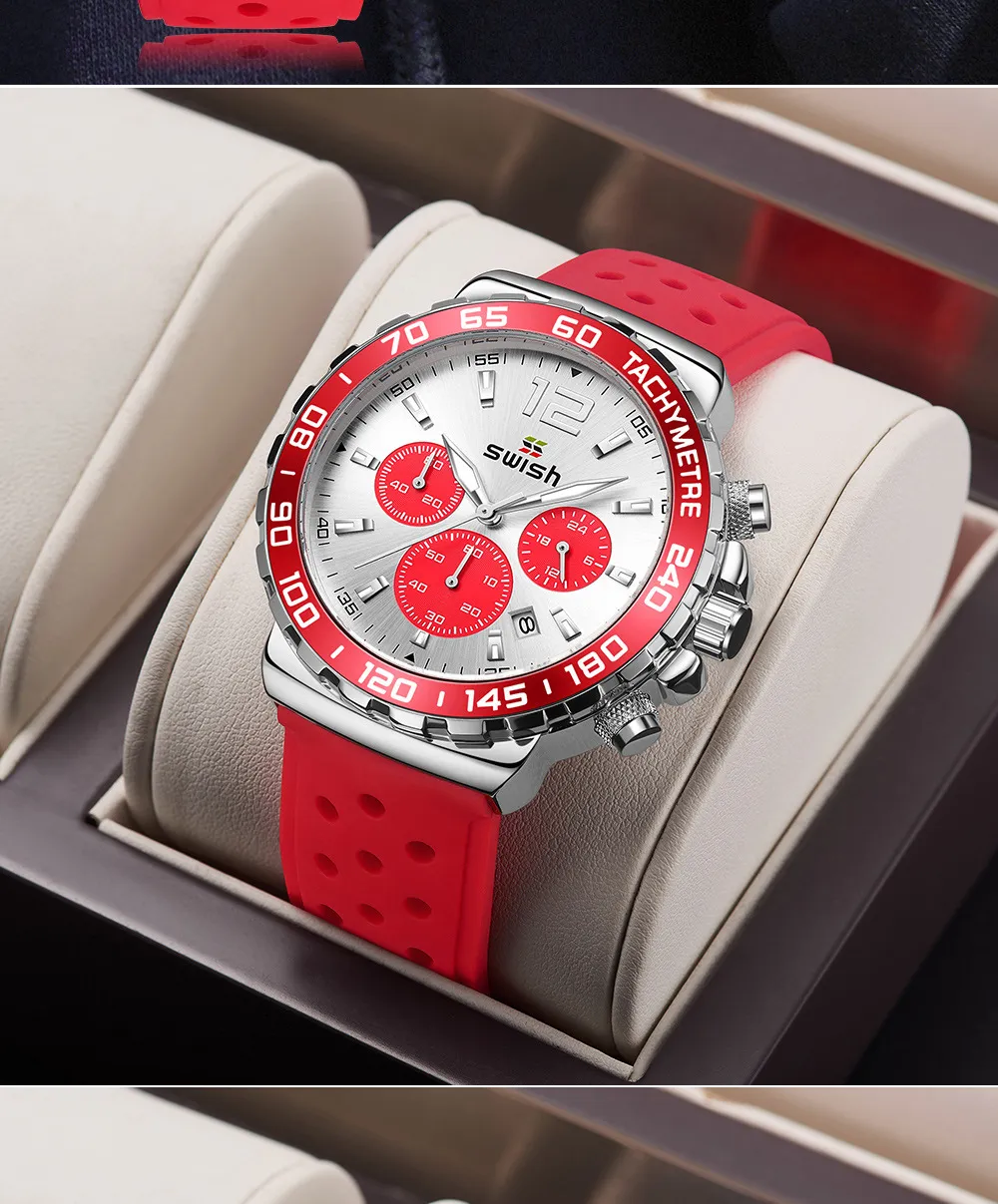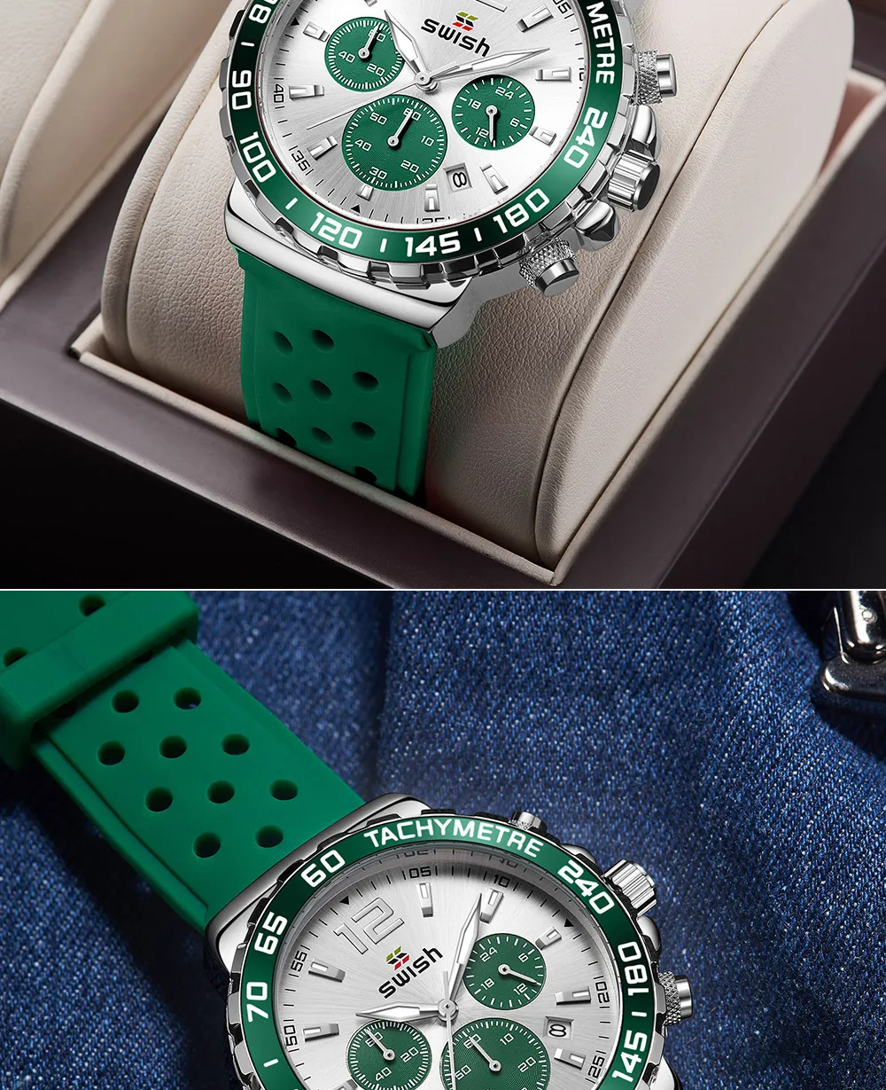 The Men's Luminous Sports Breathable Hole Silicone Strap Six-Pin Quartz Watch is the perfect companion for men who live an active lifestyle