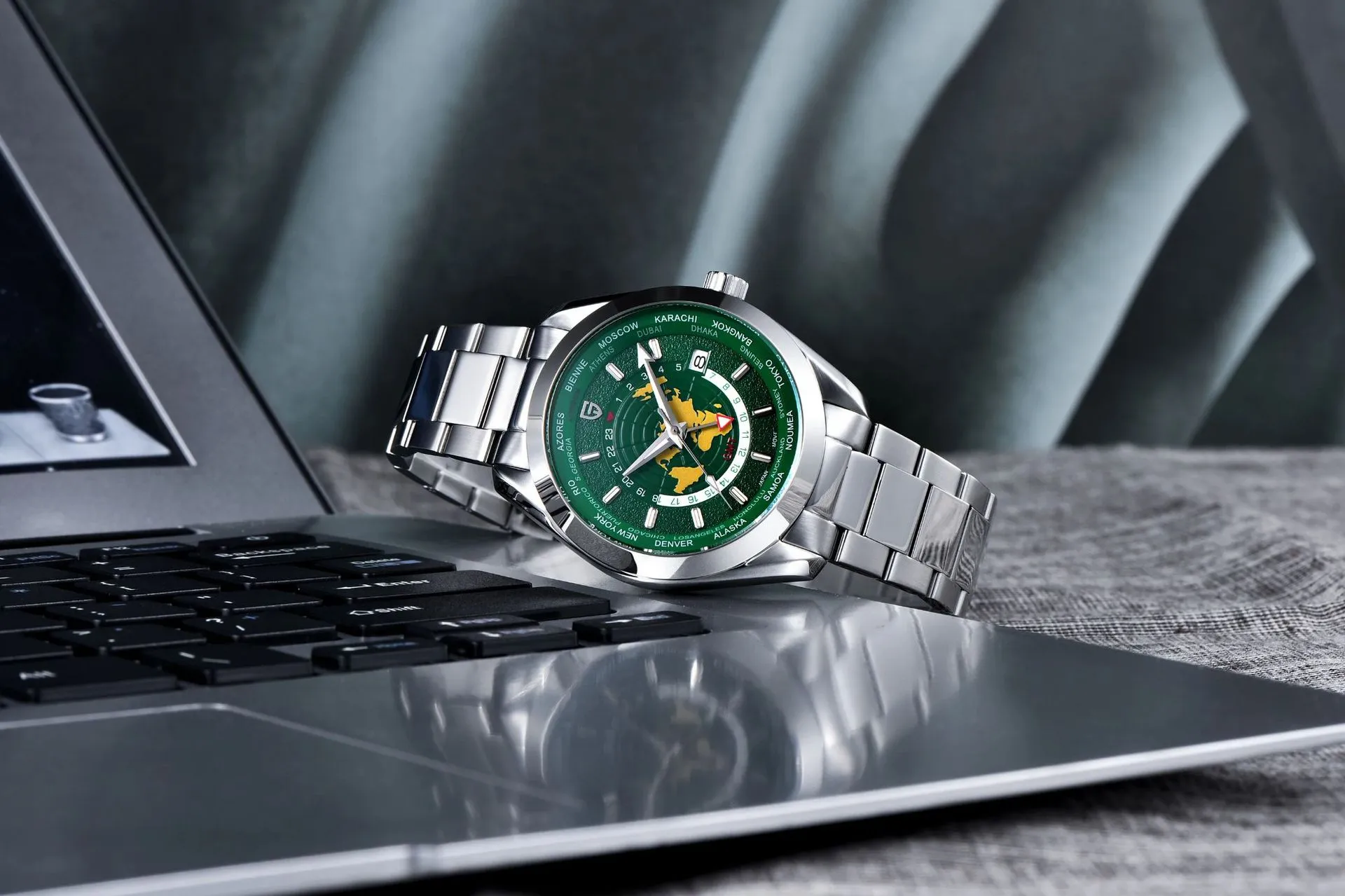 The Men’s Multifunctional Mechanical GMT Dual Time Zone Luminous Waterproof Watch is a masterpiece of innovation and design. Crafted for the modern man who values both aesthetics and practicality, this watch offers a perfect blend of sophistication, durability, and advanced functionality. Whether you’re a frequent traveler, a business professional, or a horology enthusiast, this watch is designed to meet your every need with unmatched style.