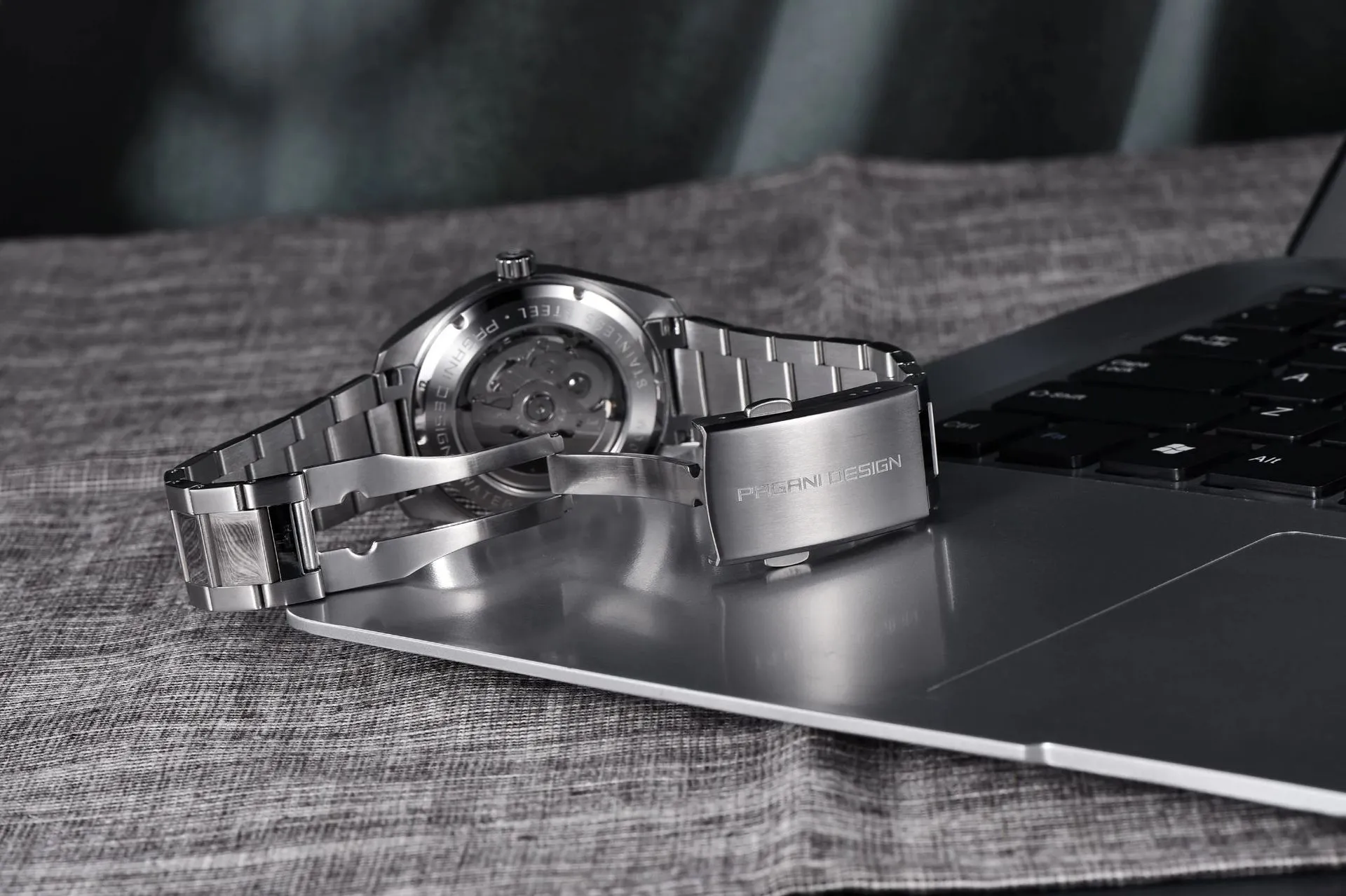 This multifunctional mechanical watch is a must-have addition to any horology collection.