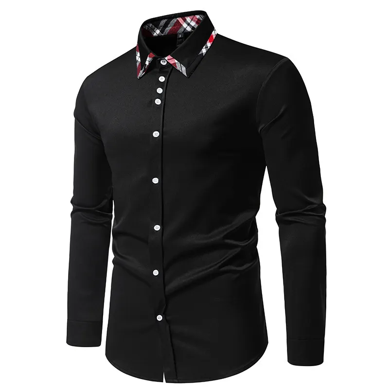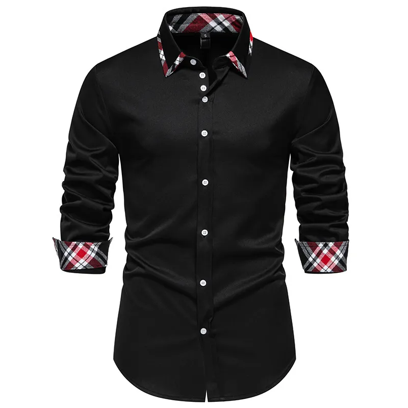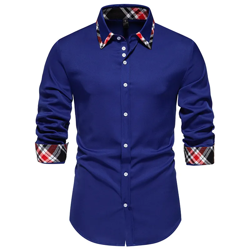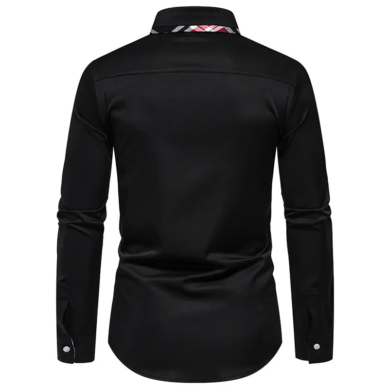 Men's Plaid Contrast Color Triangle Collar Long Sleeve Shirt