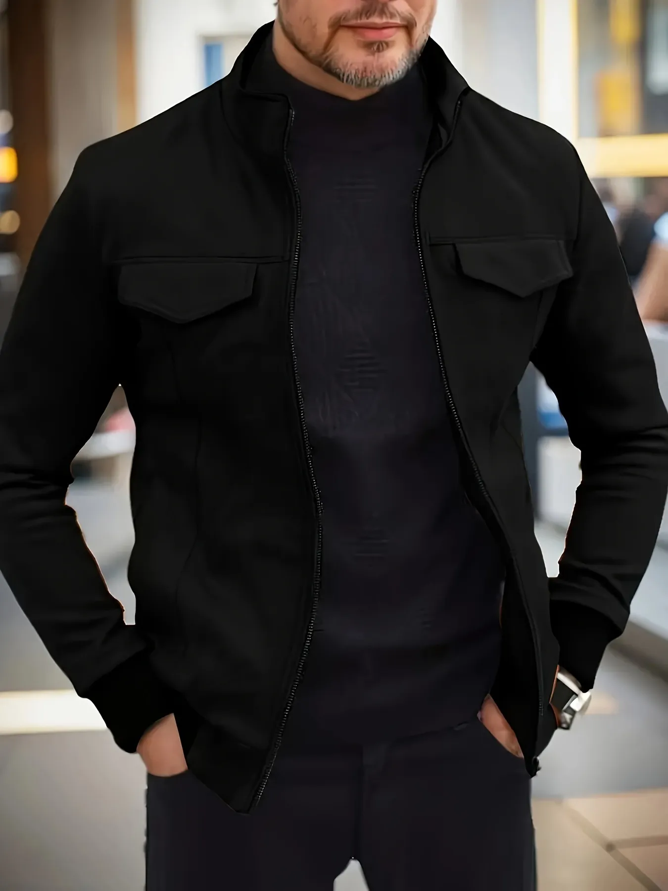 Men’s Polo Collar Casual Jacket – Fashionable and Slimming Outerwear