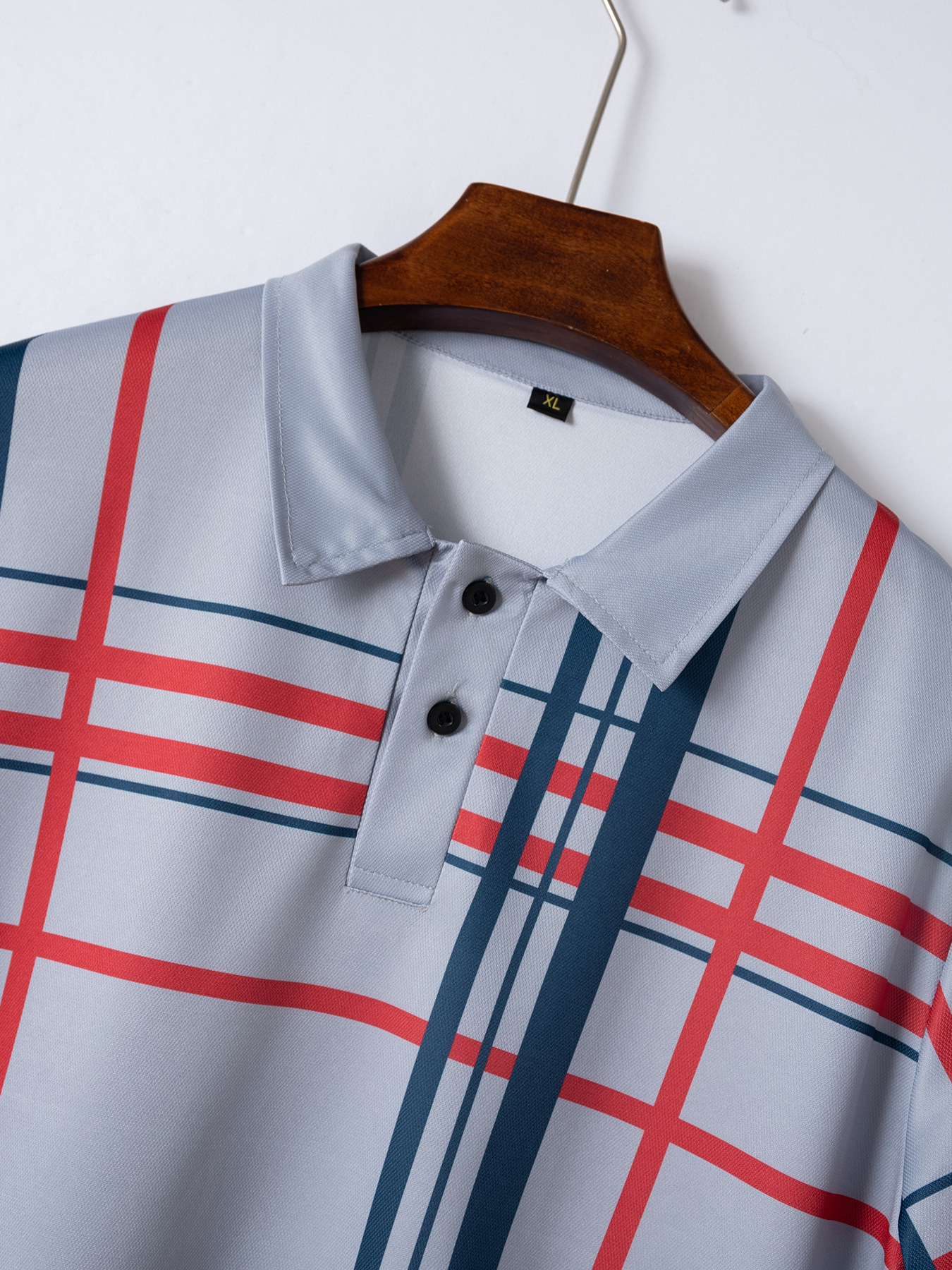 Men's Printed Lapel Button Sport Short Sleeved Shirt