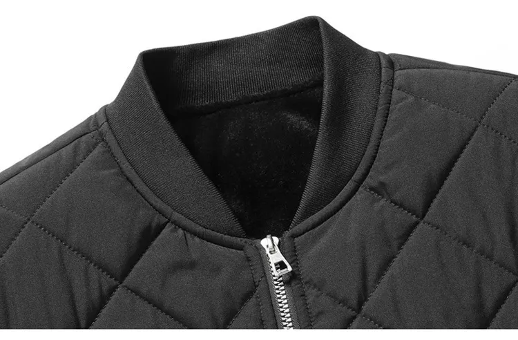 Mens Rhombic-Sewing Cotton Coat Thickened Winter Baseball Jacket with Casual Solid Color Design