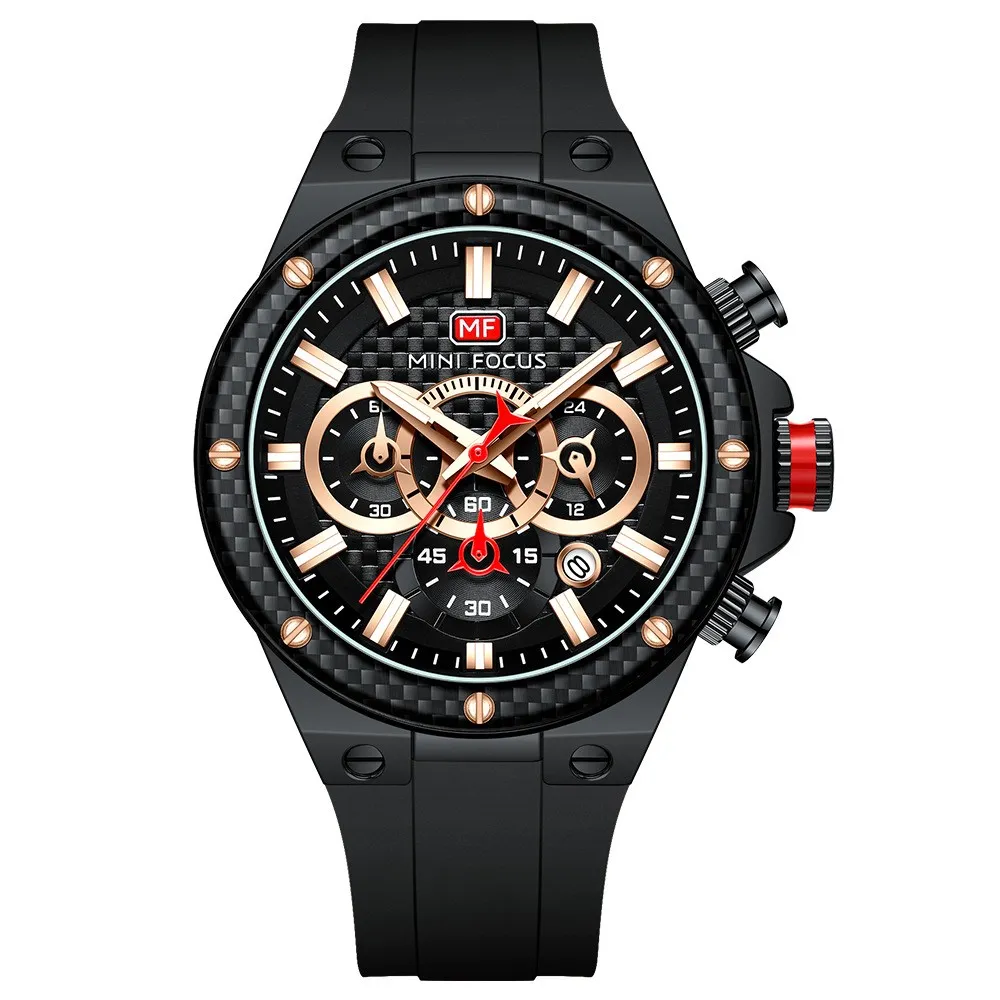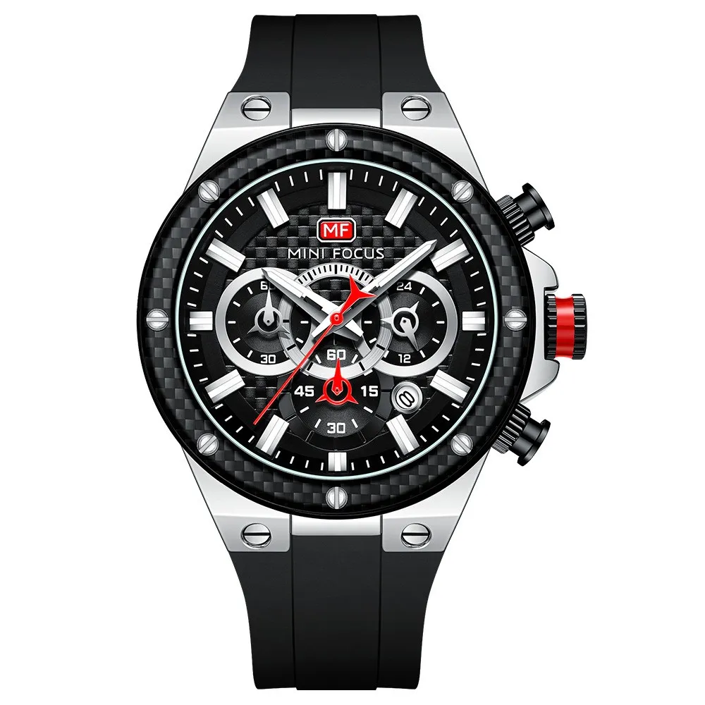 While performance is key, style is equally important. The Men's Sports Watch features a striking carbon fiber ring, adding a touch of luxury and modernity to the watch’s rugged design. Carbon fiber is known for its lightweight, durable properties, making it the ideal material for a sports watch that needs to withstand the elements while remaining comfortable on the wrist.