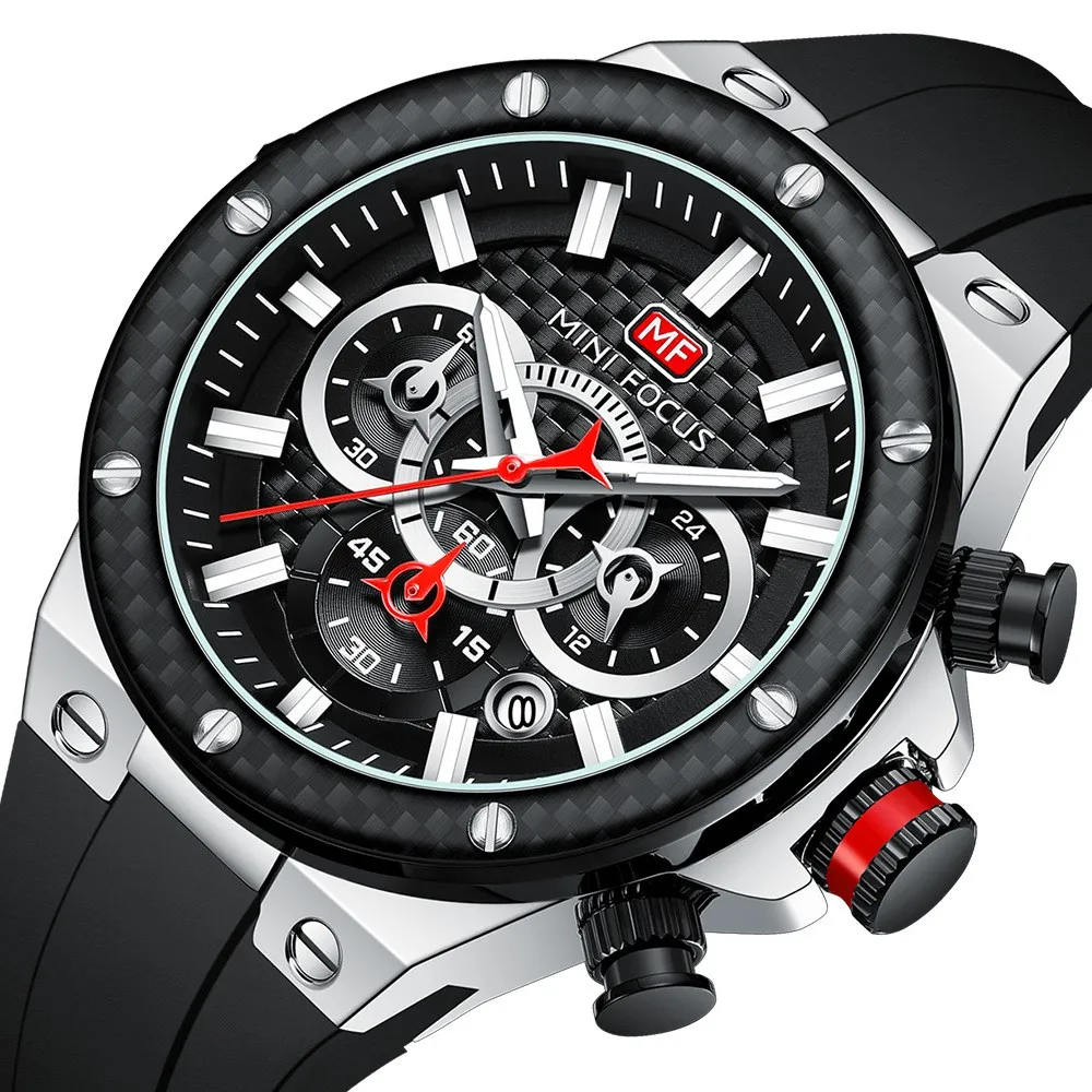 The Men's Sports Watch Waterproof Carbon Fiber Ring is as much about looking good as it is about functionality, combining a rugged design with refined, modern aesthetics that make it suitable for both sports activities and casual wear.